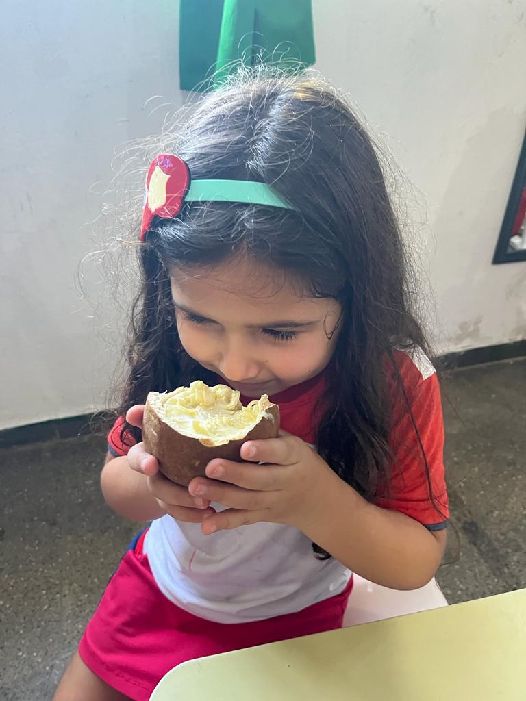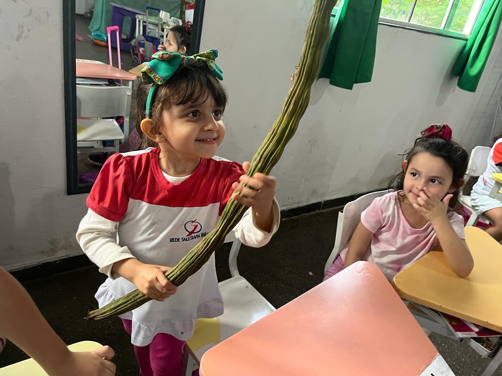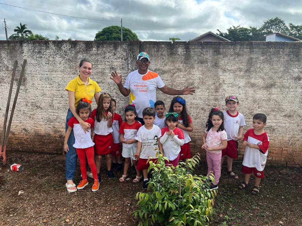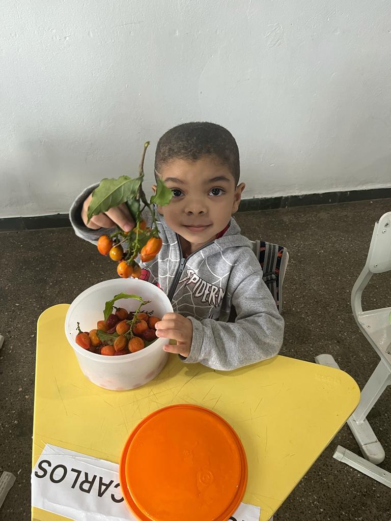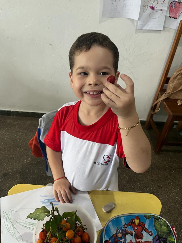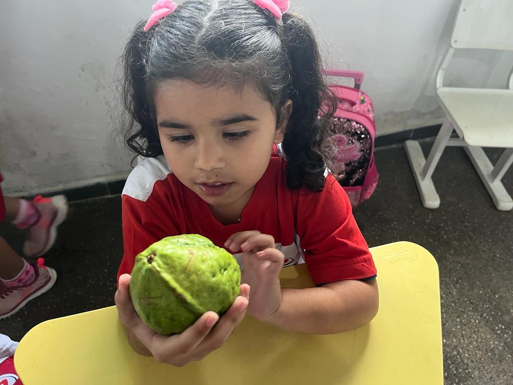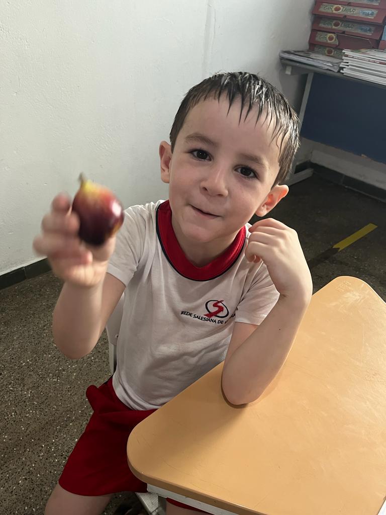 Objetivo: conhecer frutas de diferentes sabores, estimular a criança a experimentar frutas que não conhecem. Ações: degustar frutas diferentes, observar os tamanhos texturas e sabores, produzir receitas como vitamina, sucos e sorvete e fazer o plantio das frutas.