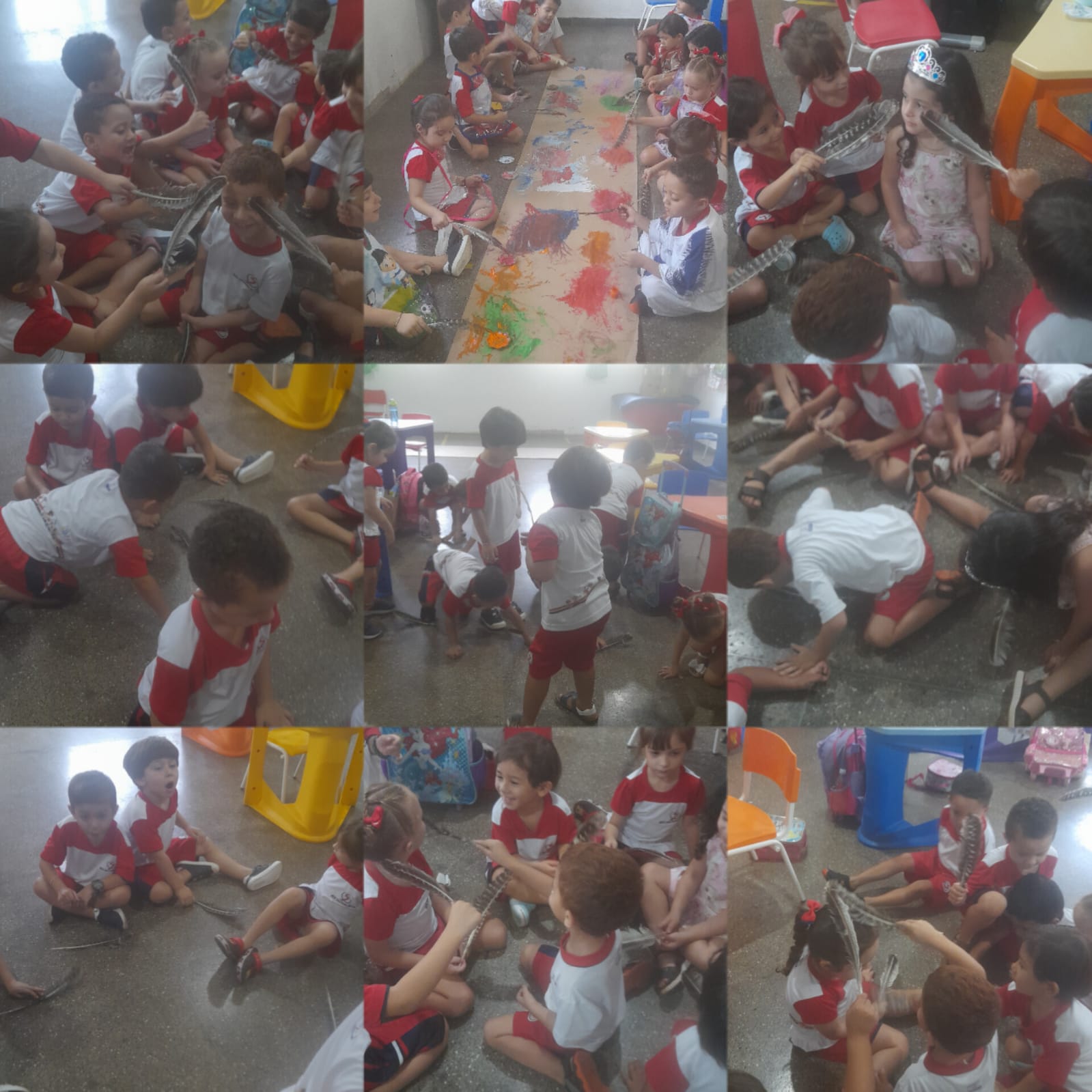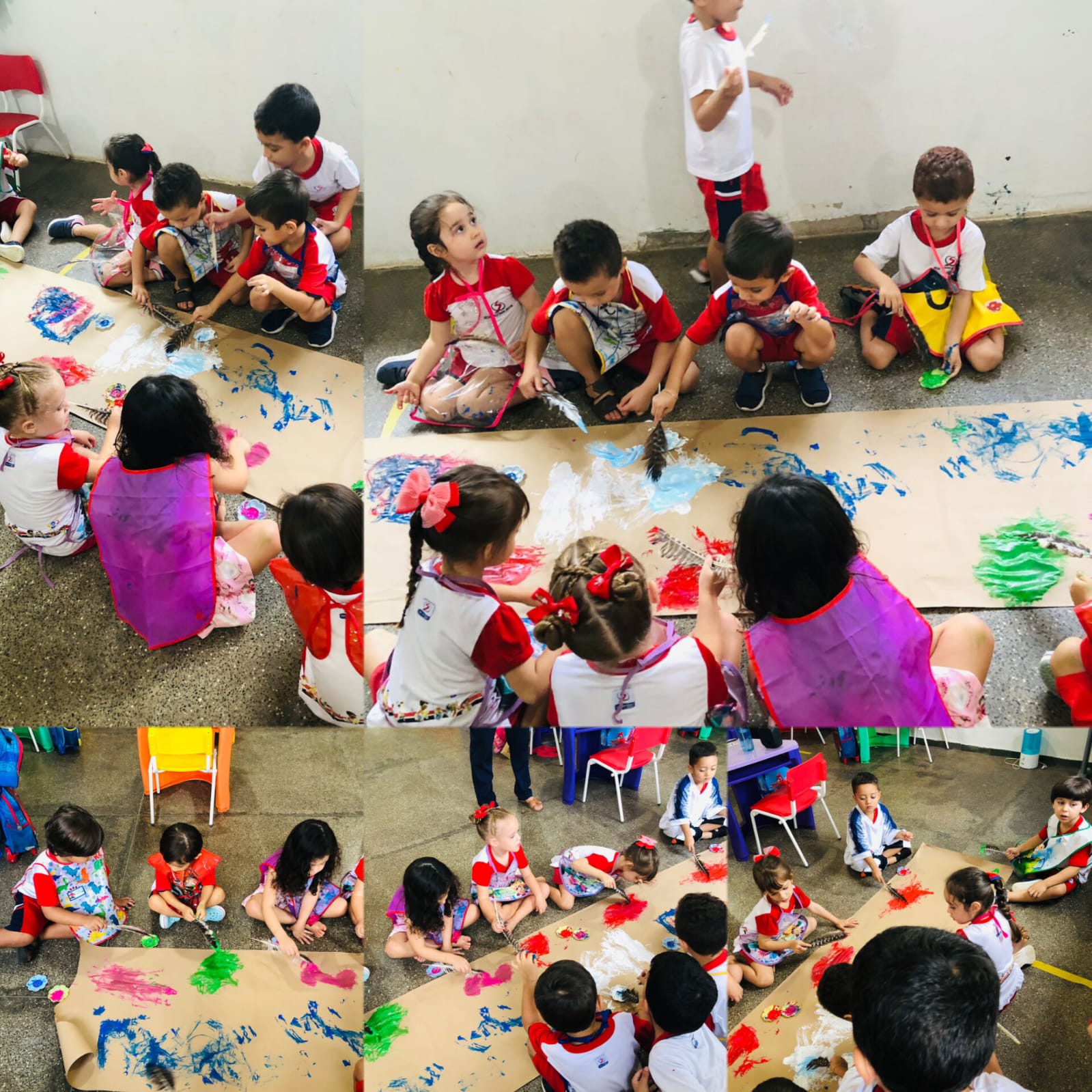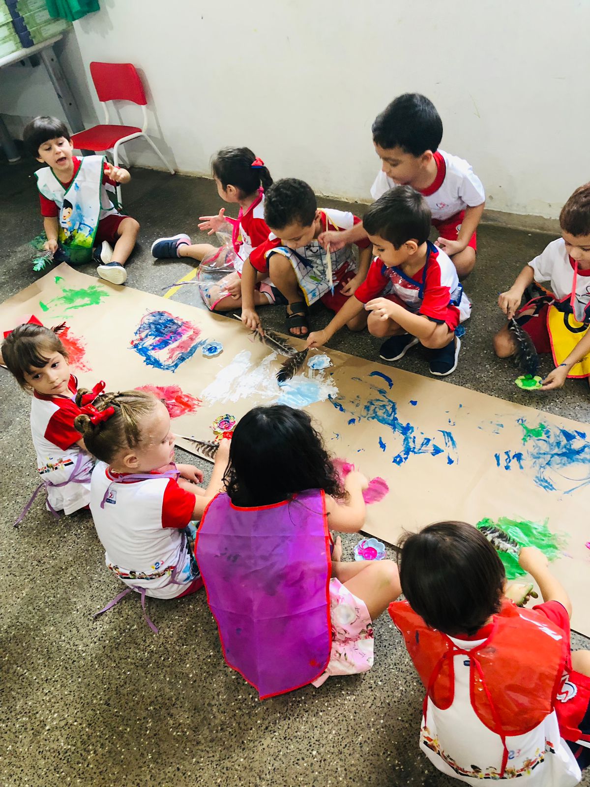 Os alunos maternal 3 fizeram pintura com pena. A atividade objetiva proporcionar uma infinidade de possibilidades e aprendizado. Diferente dos brinquedos fabricados, esses objetos permitem que a criança construa novas possibilidades de acordo com sua criatividade. Os brinquedos não estruturados estimulam a inteligência das crianças e são importantíssimos para o desenvolvimento da aprendizagem.