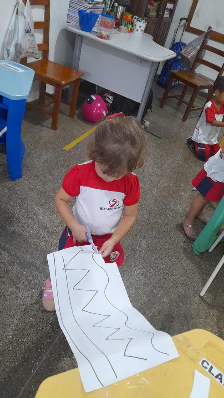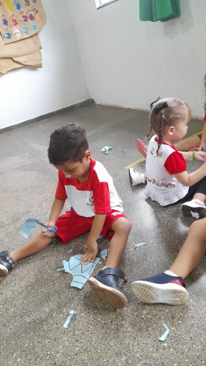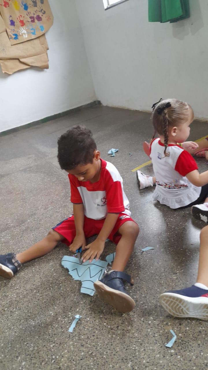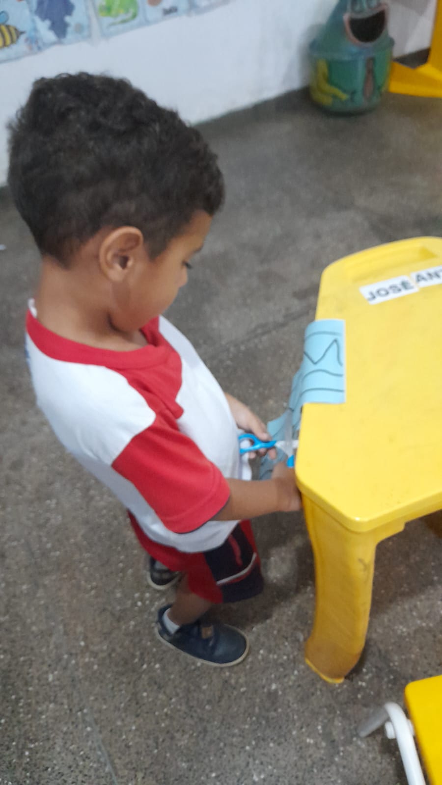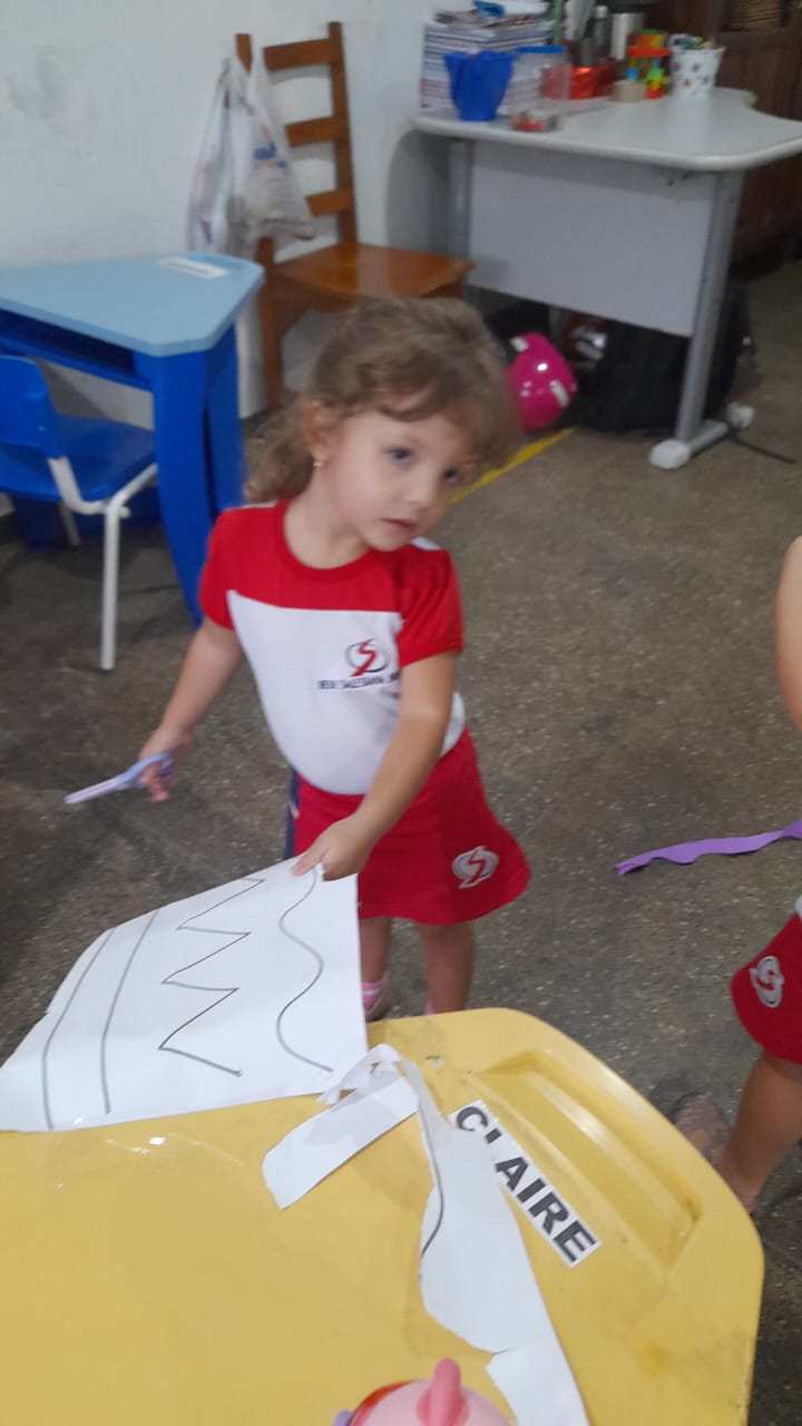 Os alunos fizeram atividades práticas utilizando a tesoura, para aprenderem a manipular a mesma. Convém destacar que o uso da tesoura desenvolve muito mais do que a coordenação motora fina. Ao aprender a usá-la de modo correto os pequenos também desenvolvem uma série de habilidades motoras e cognitivas como: Percepção visual, coordenação visomotora, integração bilateral, orientação espacial, força muscular dentre outras.