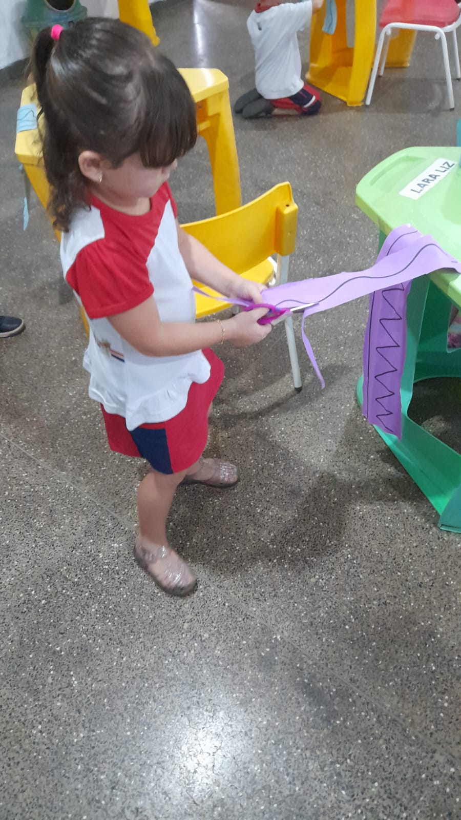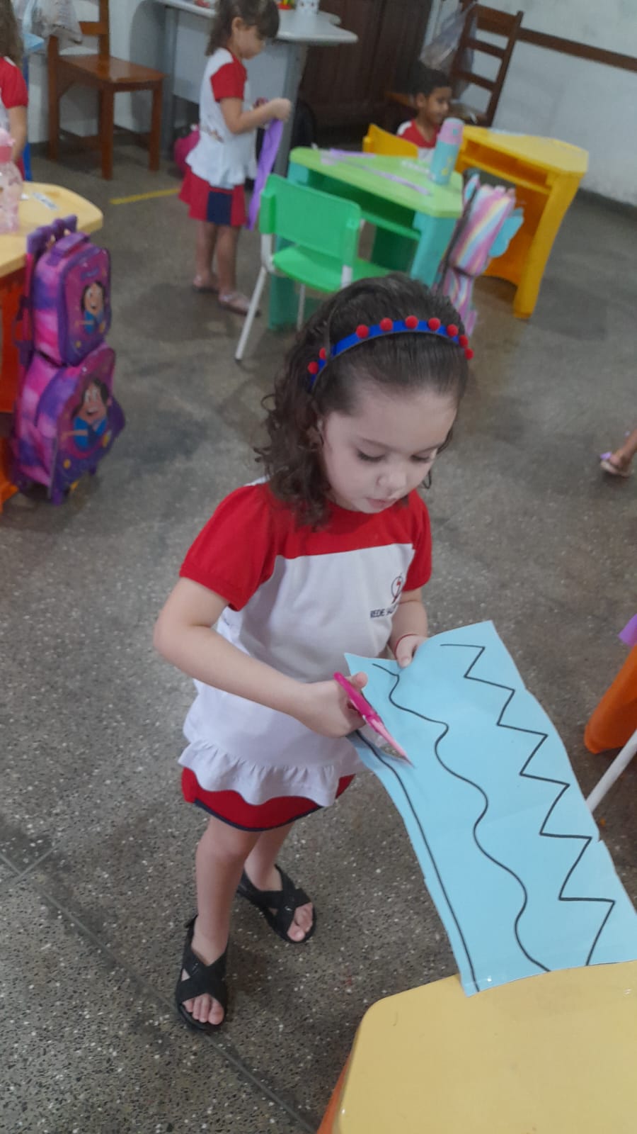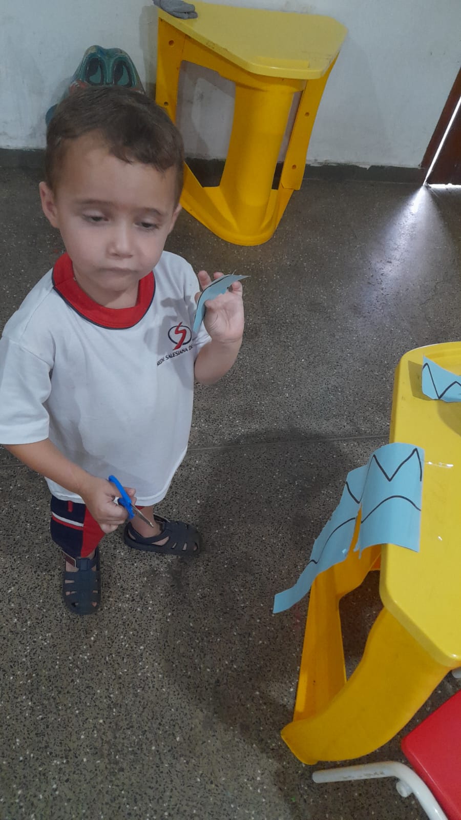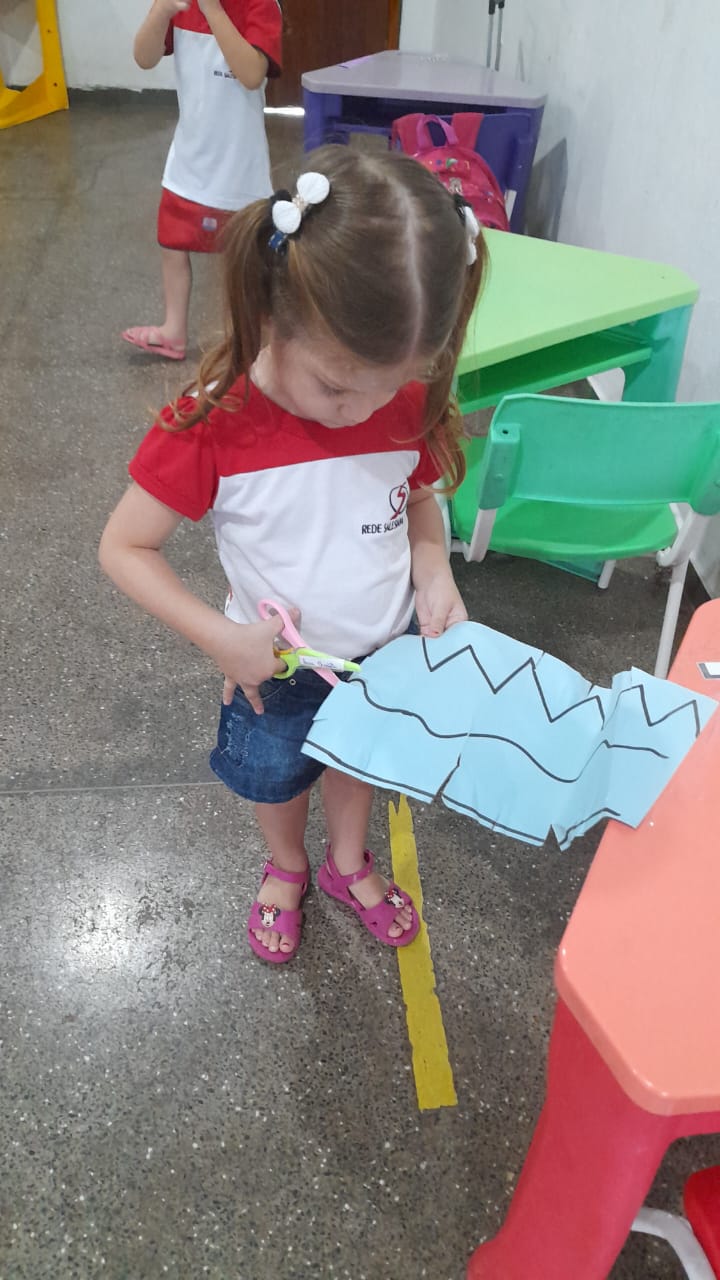 Os alunos fizeram atividades práticas utilizando a tesoura, para aprenderem a manipular a mesma. Convém destacar que o uso da tesoura desenvolve muito mais do que a coordenação motora fina. Ao aprender a usá-la de modo correto os pequenos também desenvolvem uma série de habilidades motoras e cognitivas como: Percepção visual, coordenação visomotora, integração bilateral, orientação espacial, força muscular dentre outras.