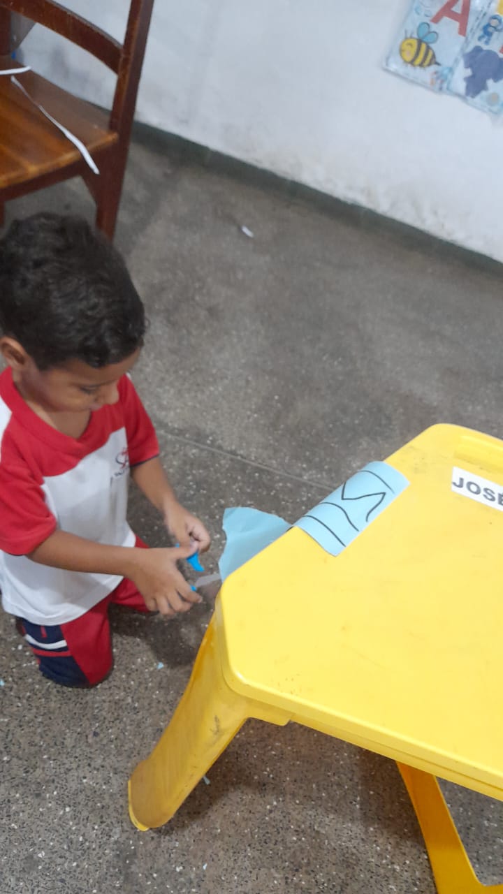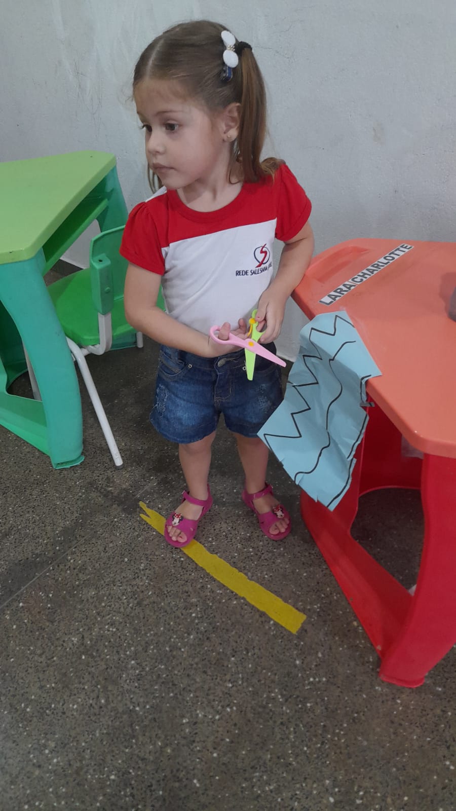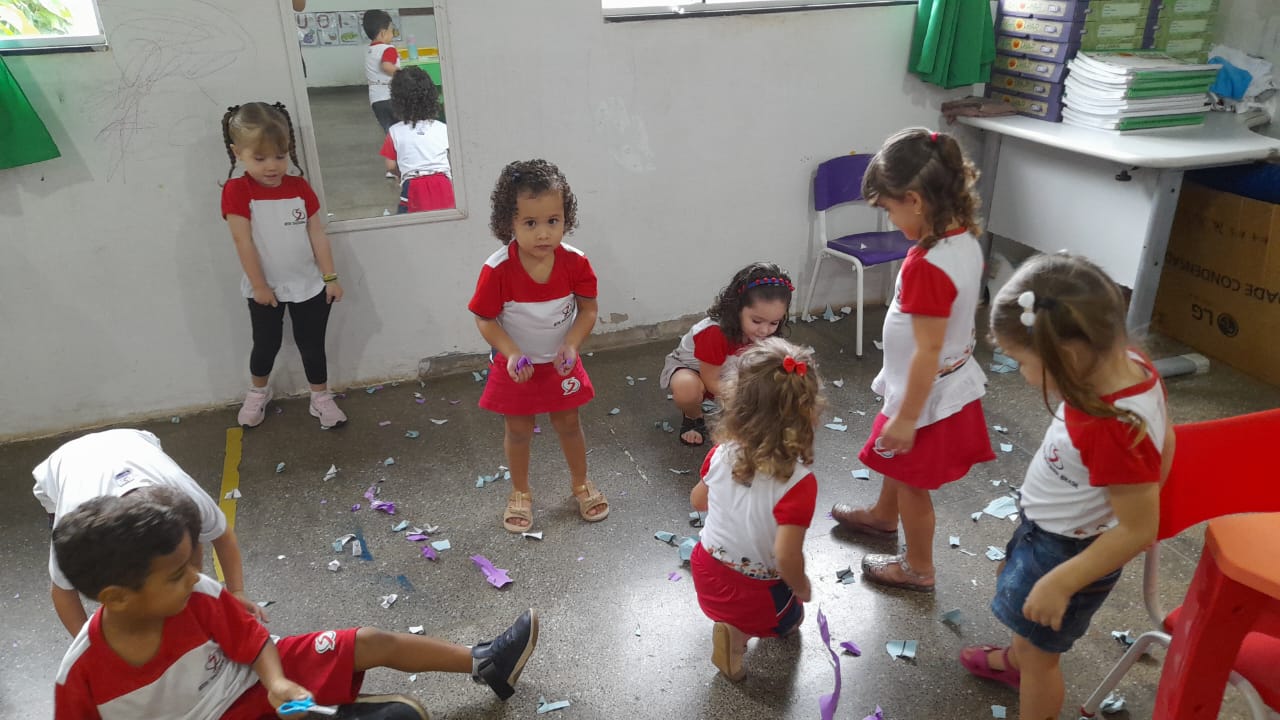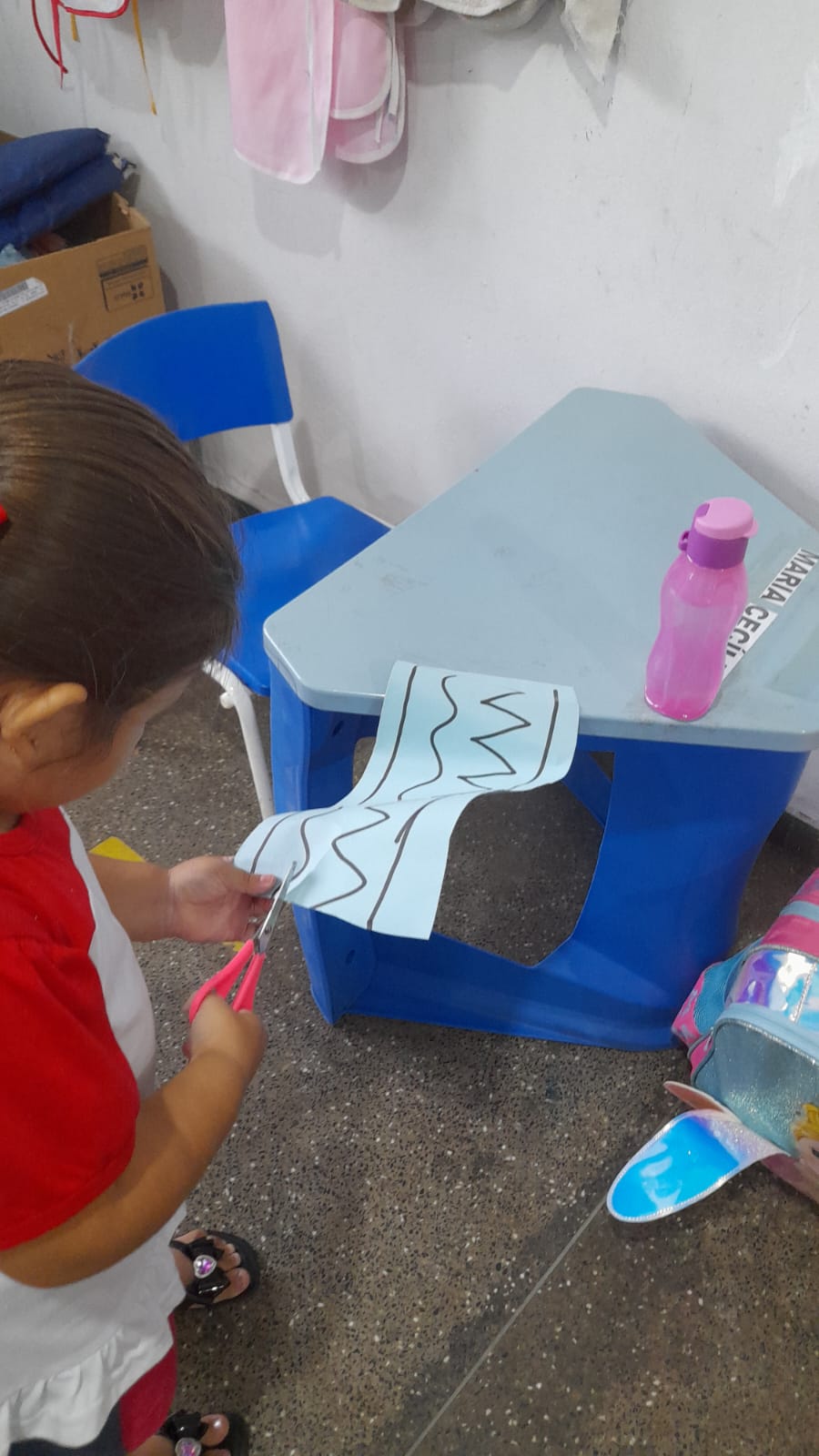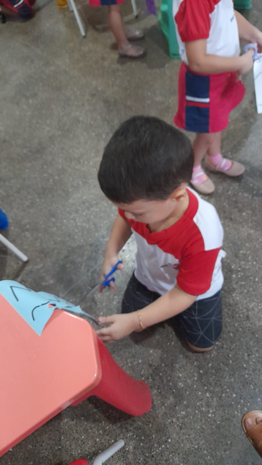 Os alunos fizeram atividades práticas utilizando a tesoura, para aprenderem a manipular a mesma. Convém destacar que o uso da tesoura desenvolve muito mais do que a coordenação motora fina. Ao aprender a usá-la de modo correto os pequenos também desenvolvem uma série de habilidades motoras e cognitivas como: Percepção visual, coordenação visomotora, integração bilateral, orientação espacial, força muscular dentre outras.