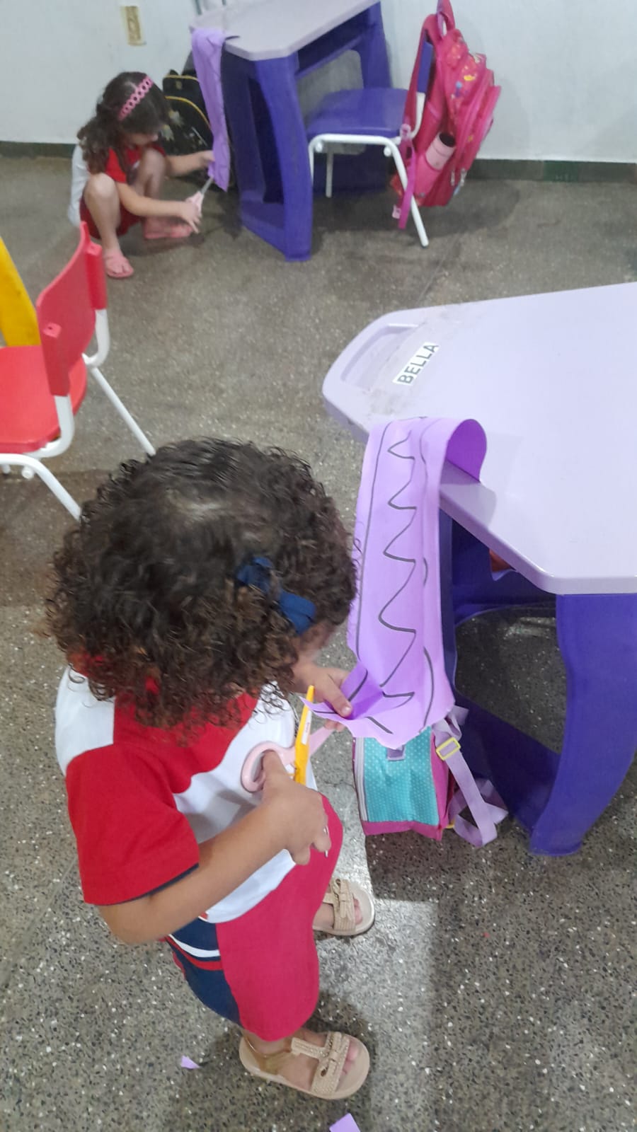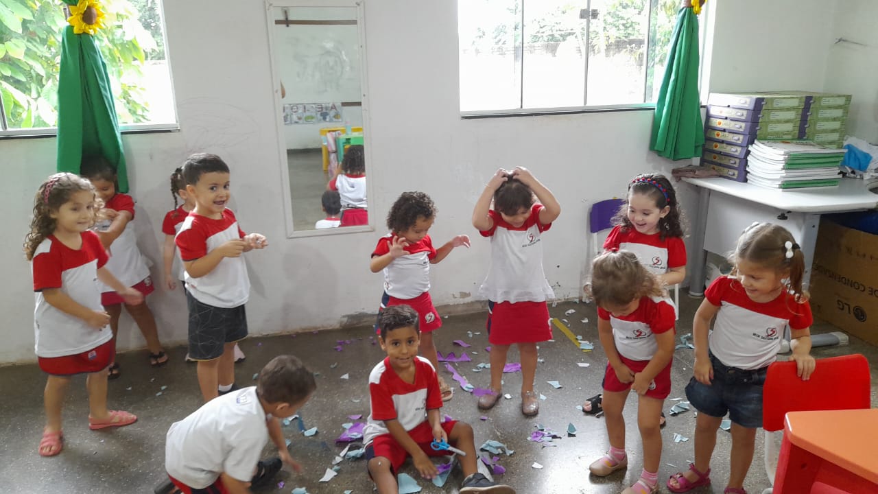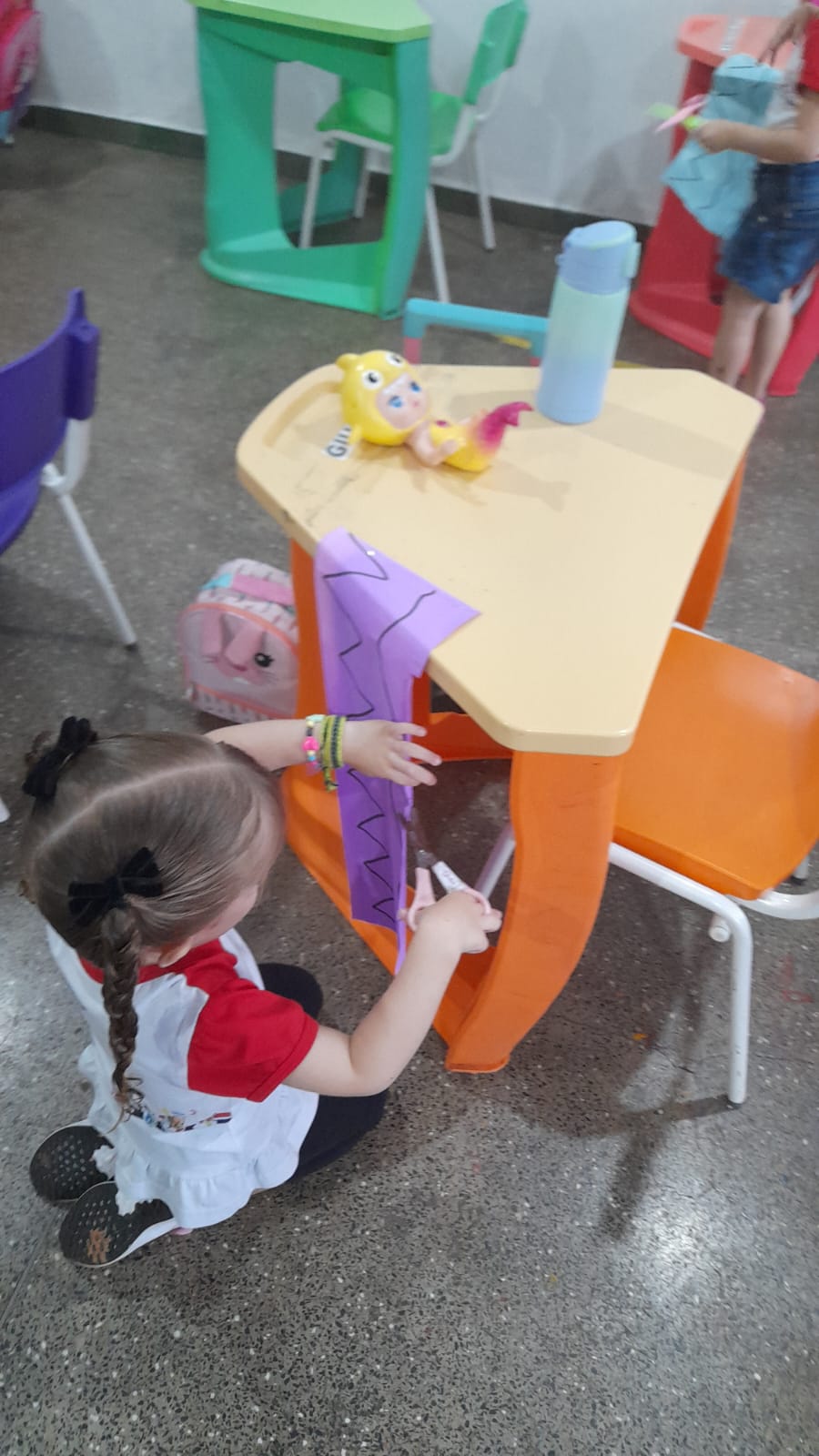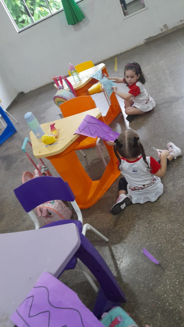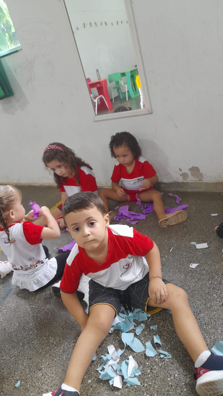 Os alunos fizeram atividades práticas utilizando a tesoura, para aprenderem a manipular a mesma. Convém destacar que o uso da tesoura desenvolve muito mais do que a coordenação motora fina. Ao aprender a usá-la de modo correto os pequenos também desenvolvem uma série de habilidades motoras e cognitivas como: Percepção visual, coordenação visomotora, integração bilateral, orientação espacial, força muscular dentre outras.