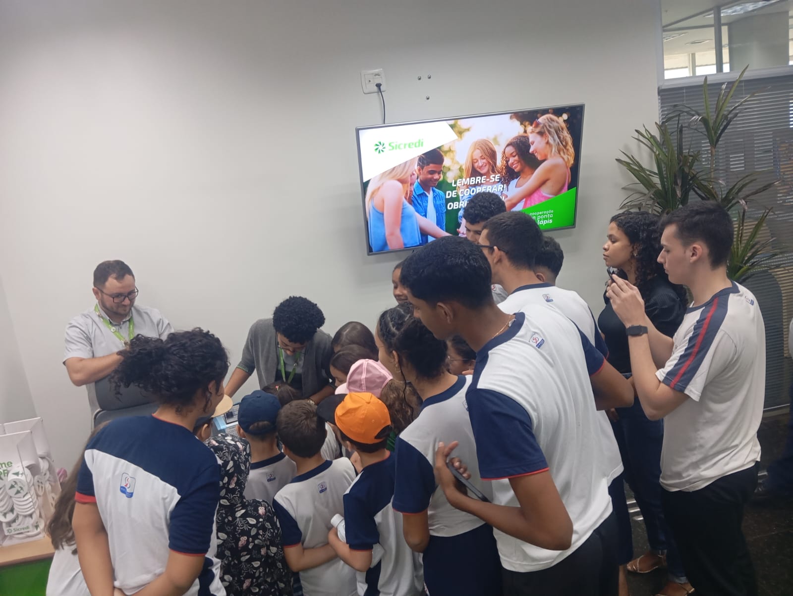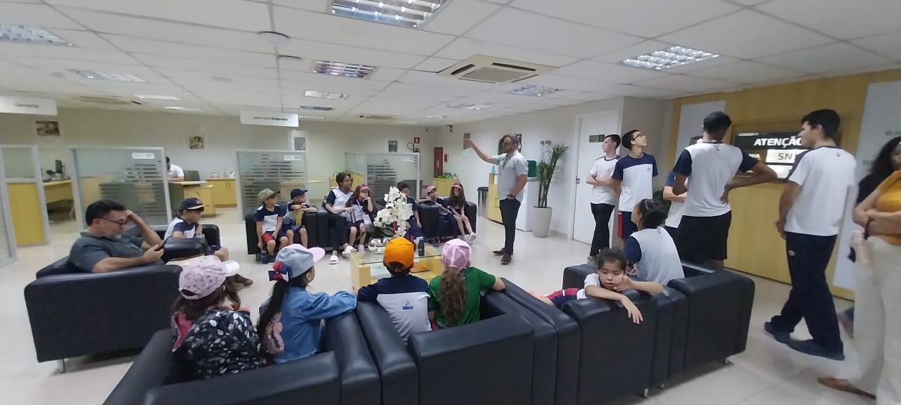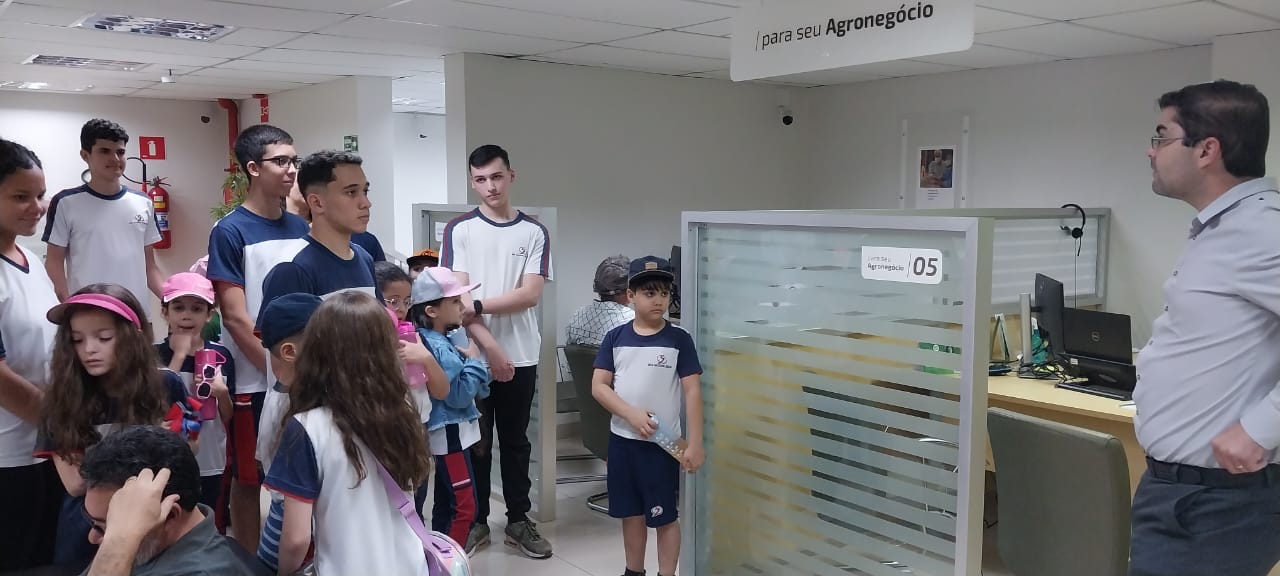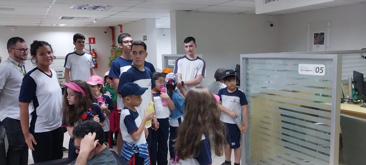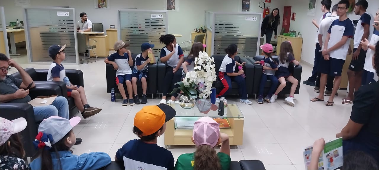 Na aula do dia 01/07, as turmas do 2° Ano do Fundamental I e o 1° Ano do Ensino Médio tiveram aula a campo na cooperativa de crédito Sicredi Biomas, afim de sanar algumas dúvidas sobre a agência e seu funcionamento. O projeto surgiu através de perguntas feitas pelos alunos, como por exemplo: Empreender é só investir ?