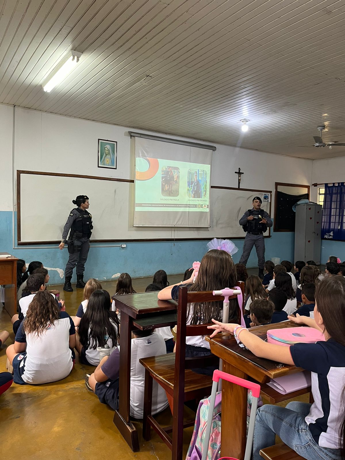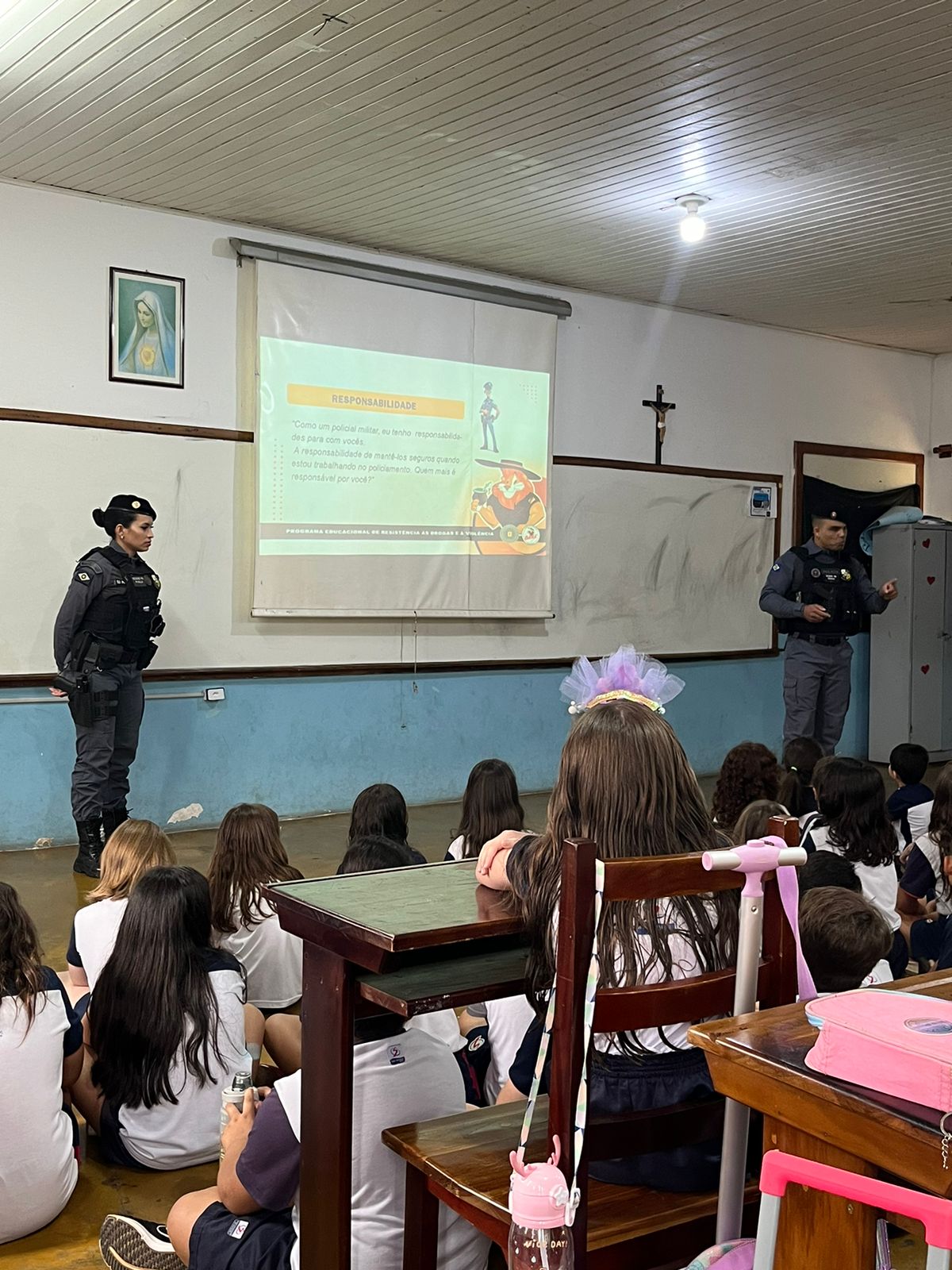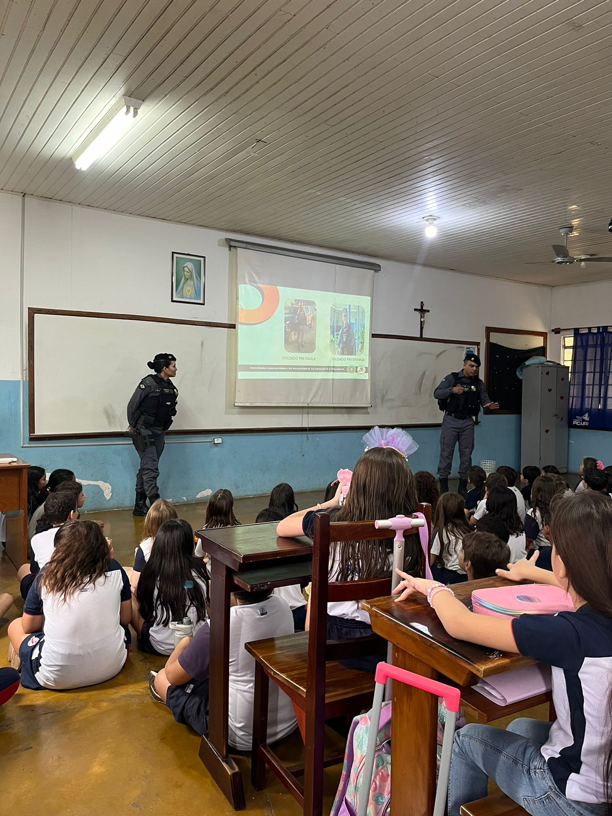 No dia 16/09, recebemos a visita do Soldado PM Erismar e Soldado PM Paula, que vieram proporcionar um diálogo sobre “Responsabilidade, Bulliyng e características do Bom Cidadão.