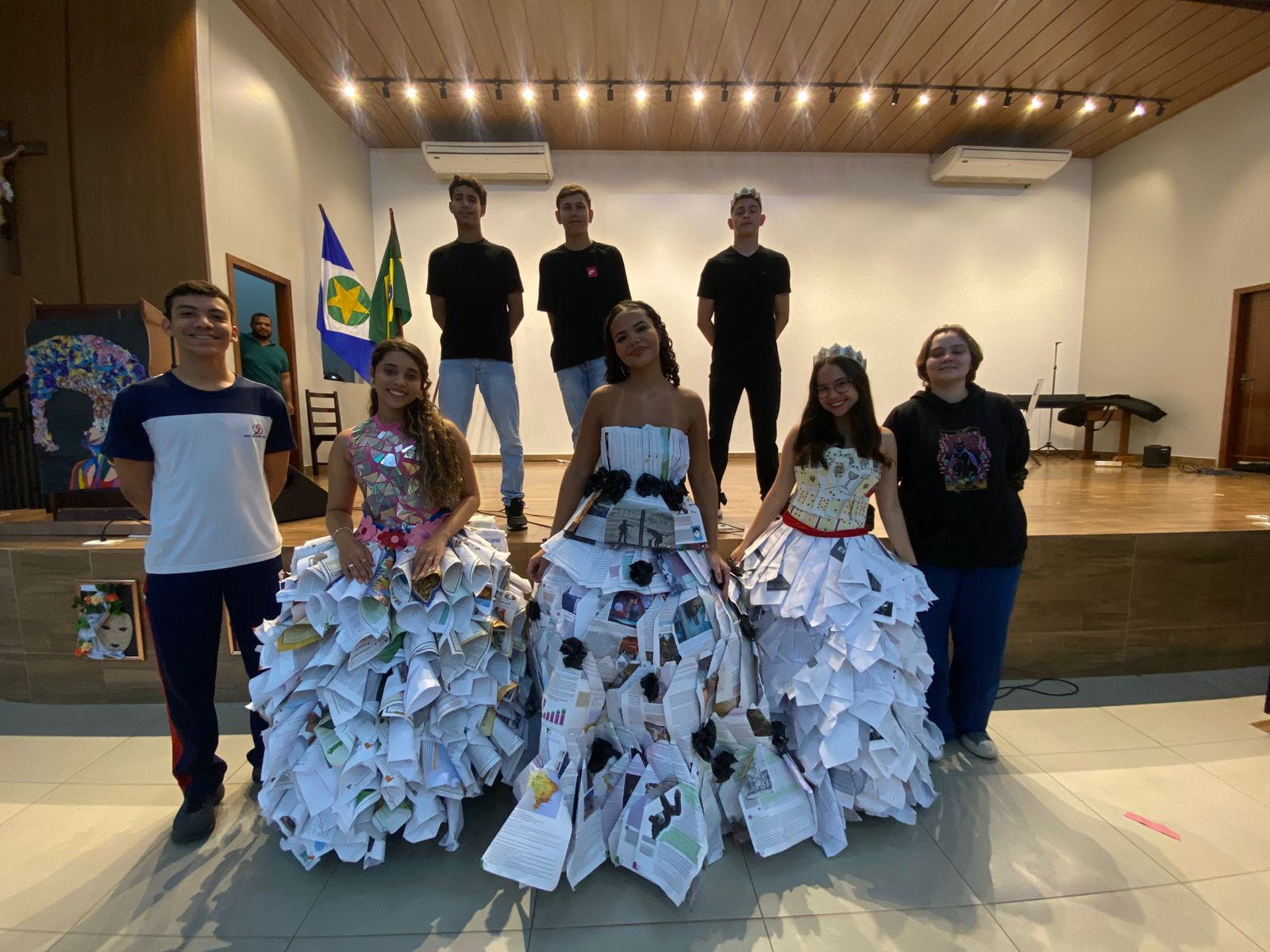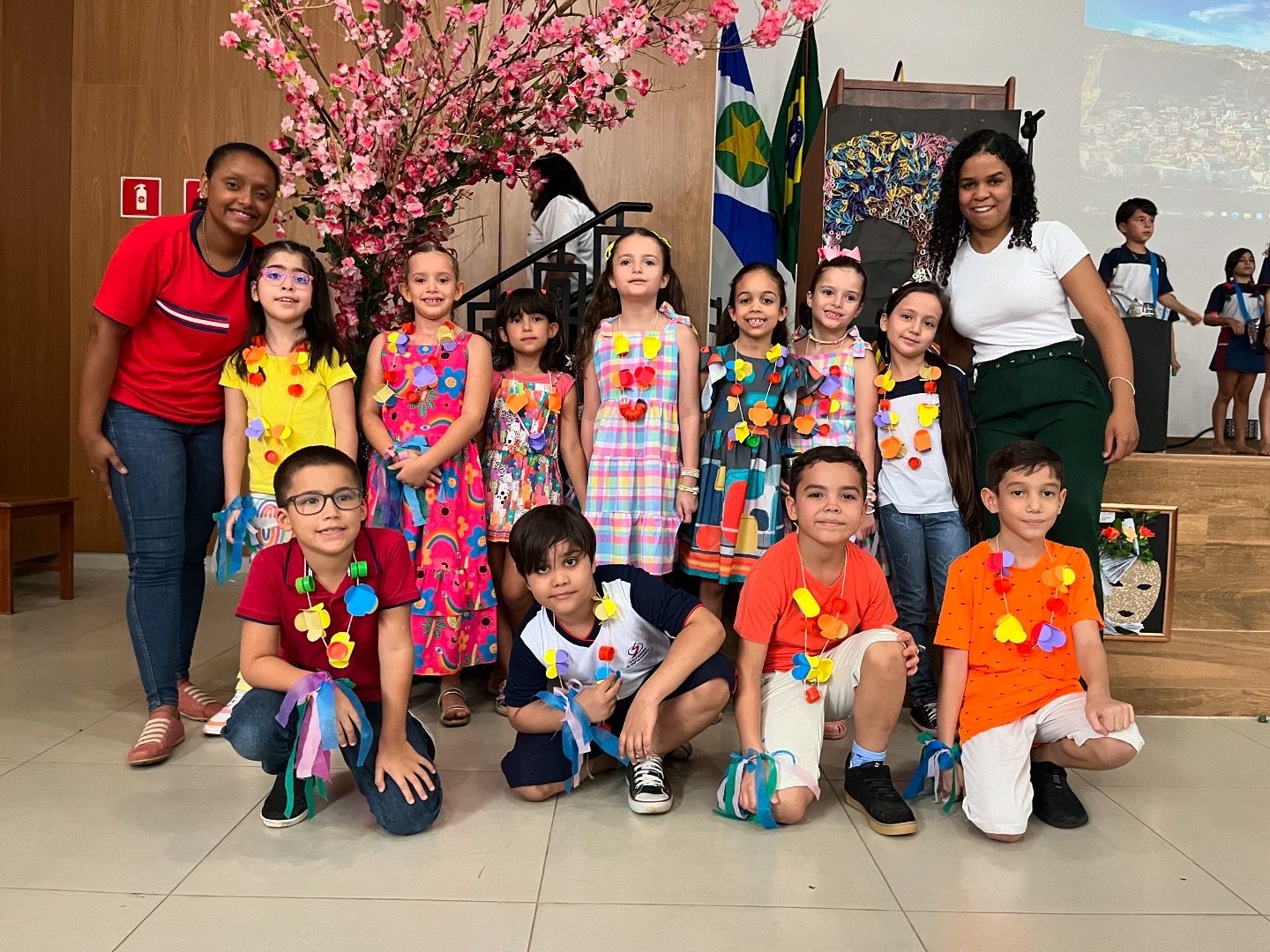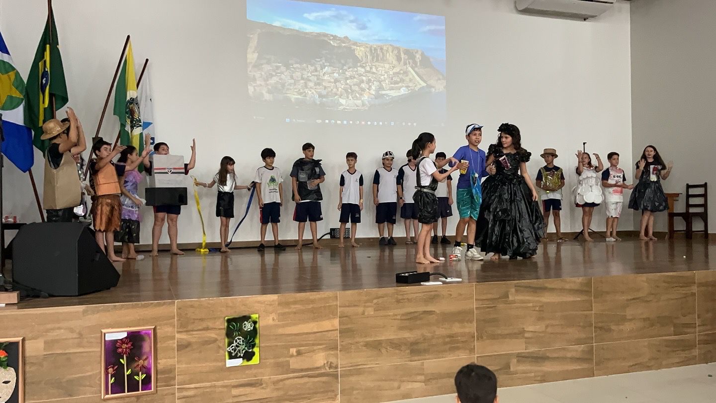 A festa da primavera contou com diversas apresentações, decoração e trajes confeccionados a partir de materiais recicláveis com o objetivo de estimular o estado de arte da natureza em sua preservação ambiental. ✨