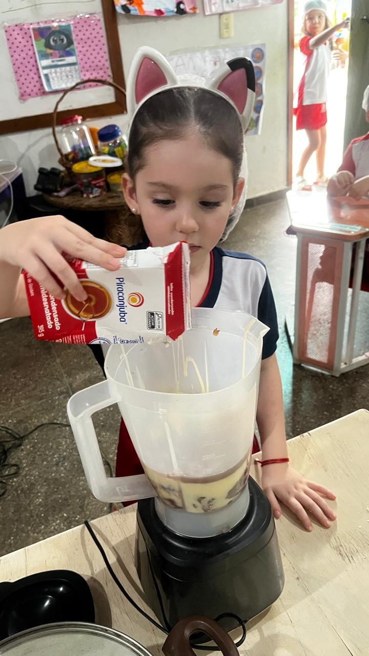 Suco do Hulk com couve e limão, e brigadeiro com casca de banana.