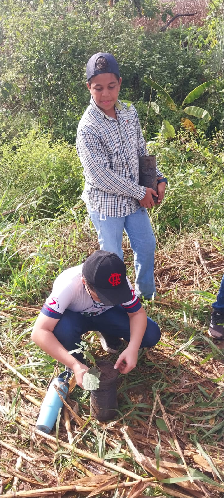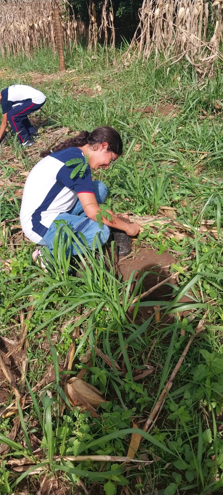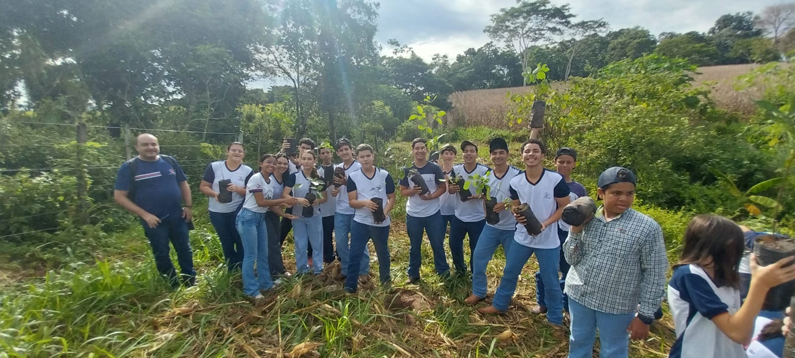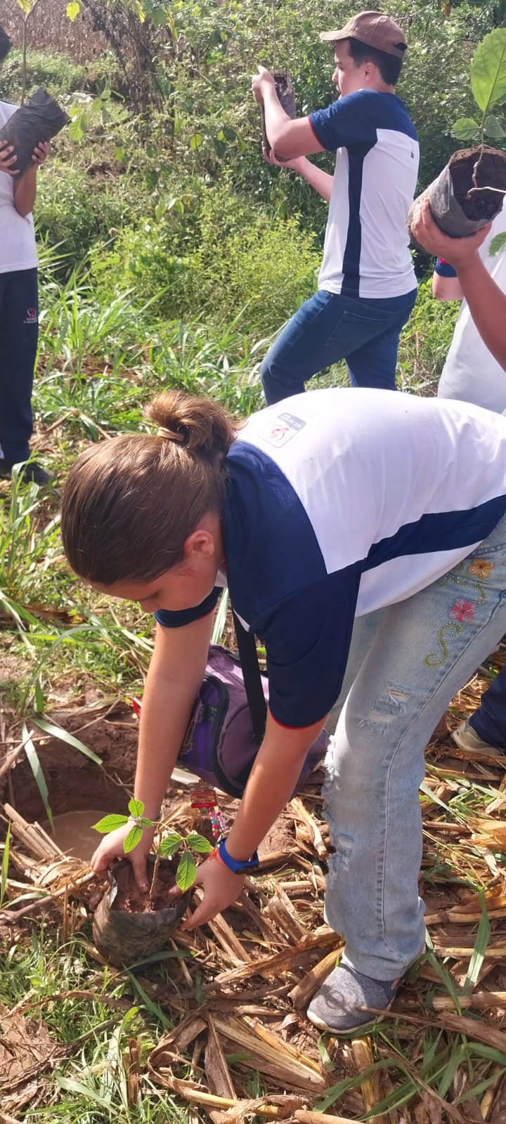 Durante a ação, os estudantes estiveram presentes no plantio de mudas de árvores na nascente do Córrego da Garrucha, contribuindo diretamente para a preservação da natureza e a recuperação de uma área tão importante.