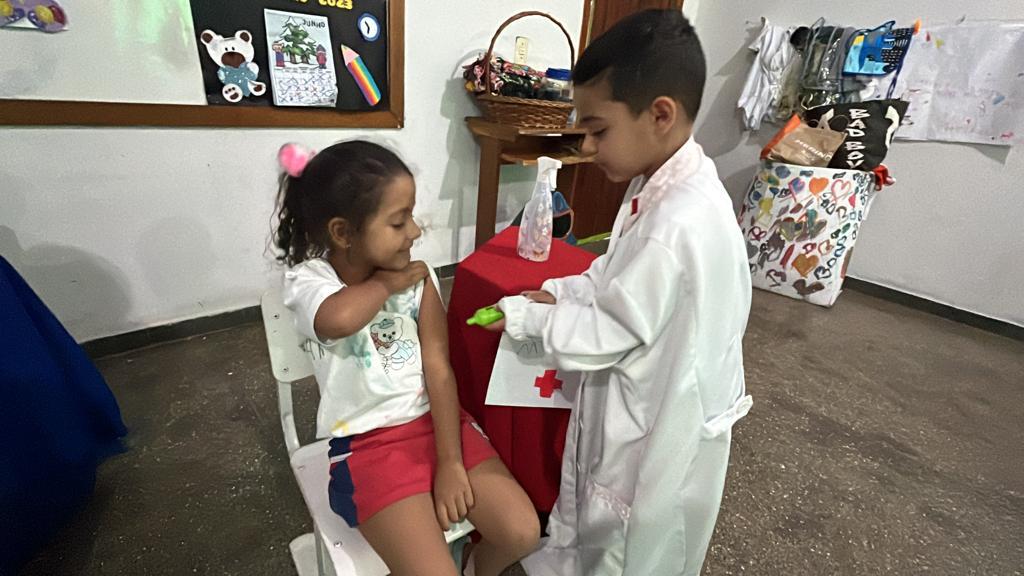Objetivo: trabalhar a importância da vacinação para as criancas, além de ensinar sobre os profissionais da área da saúde.