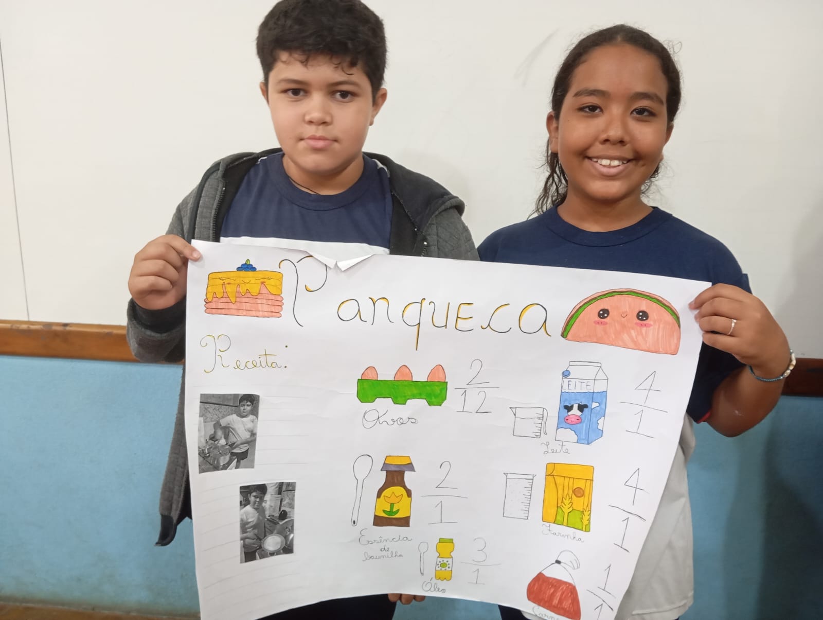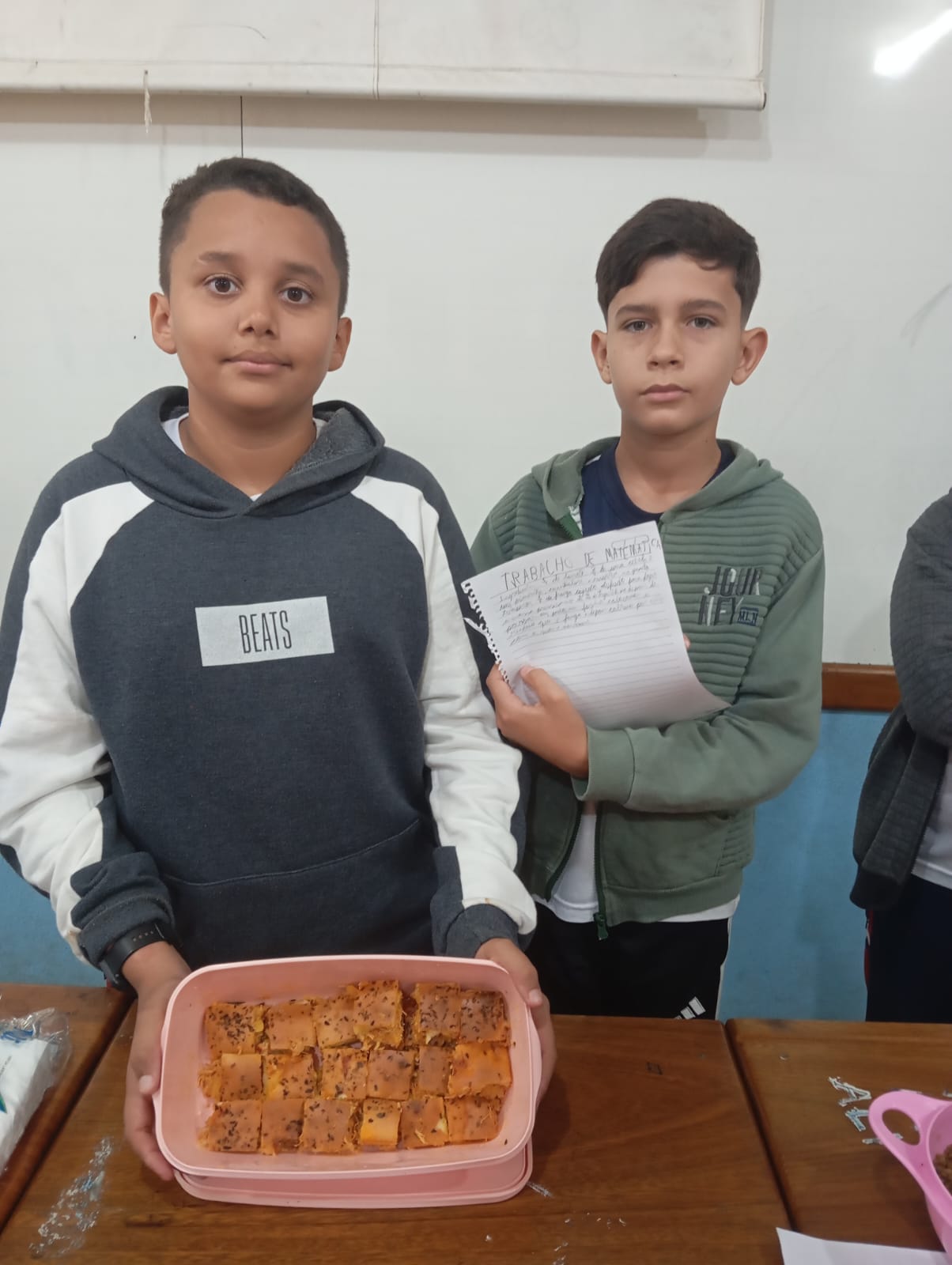 Os alunos do 6° ano, realizaram uma aula prática envolvendo os conteúdos de frações e receitas culinárias. A atividade prática, objetivou trabalhar a introdução dos conteúdos relacionados a frações de forma prática. Além de usar representações fracionárias nas receitas, também utilizaram as frações para servir. 🍕🤩