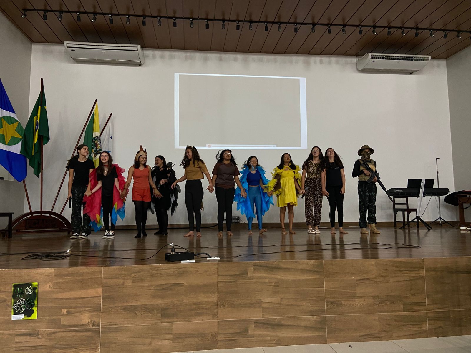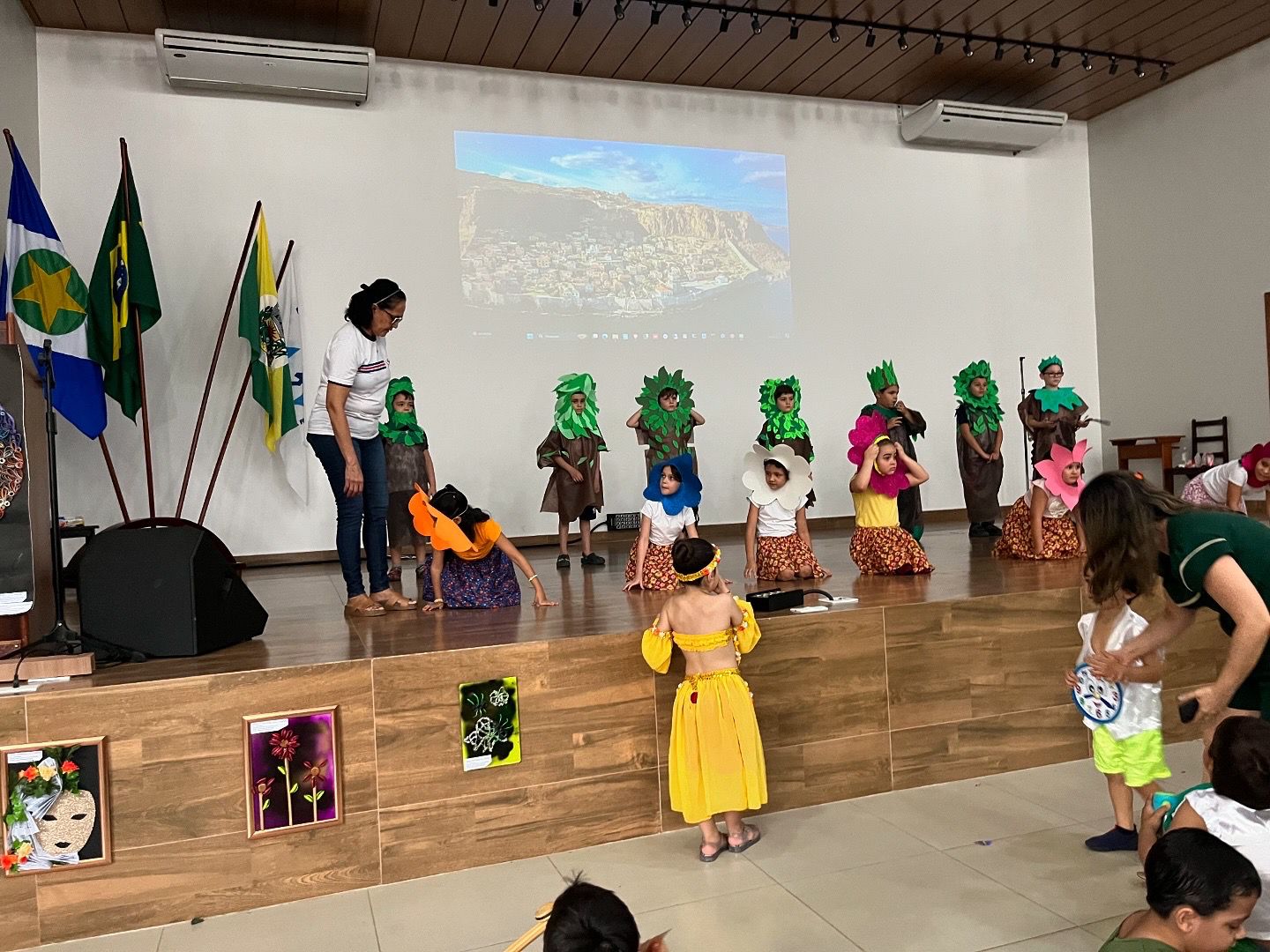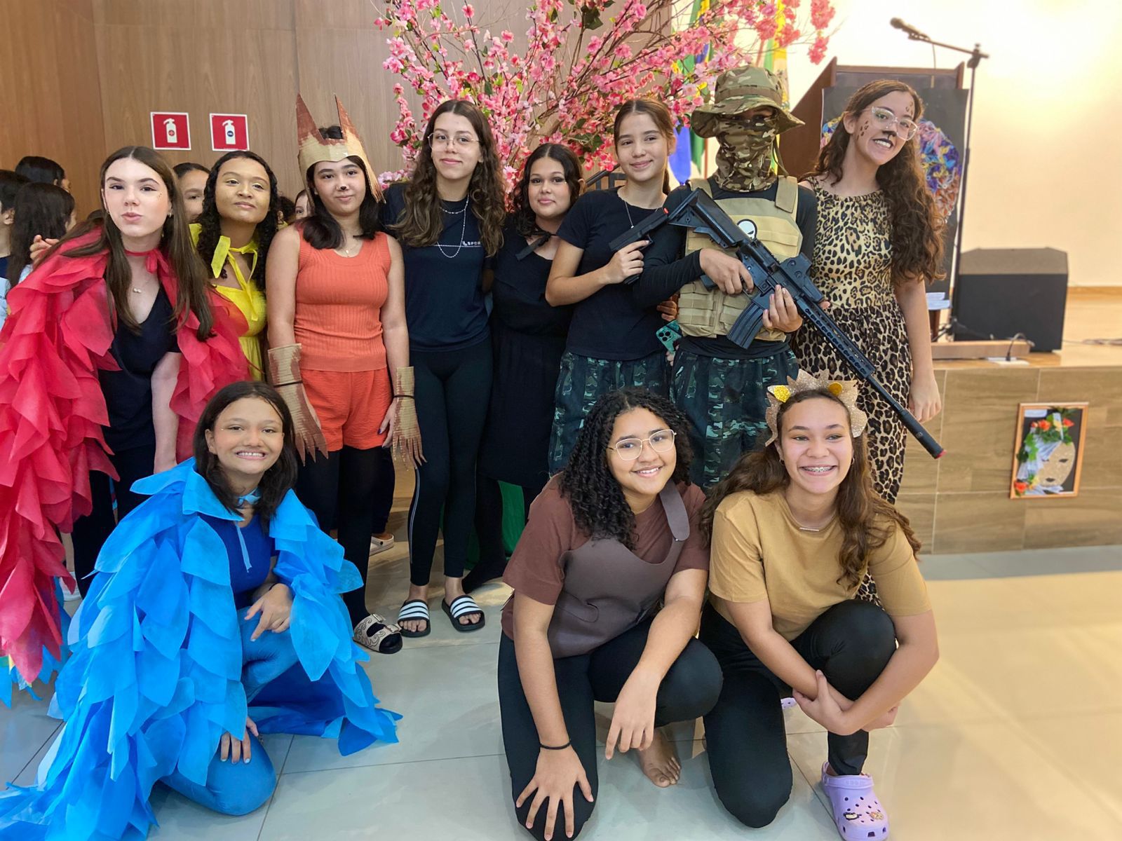 A festa da primavera contou com diversas apresentações, decoração e trajes confeccionados a partir de materiais recicláveis com o objetivo de estimular o estado de arte da natureza em sua preservação ambiental. ✨