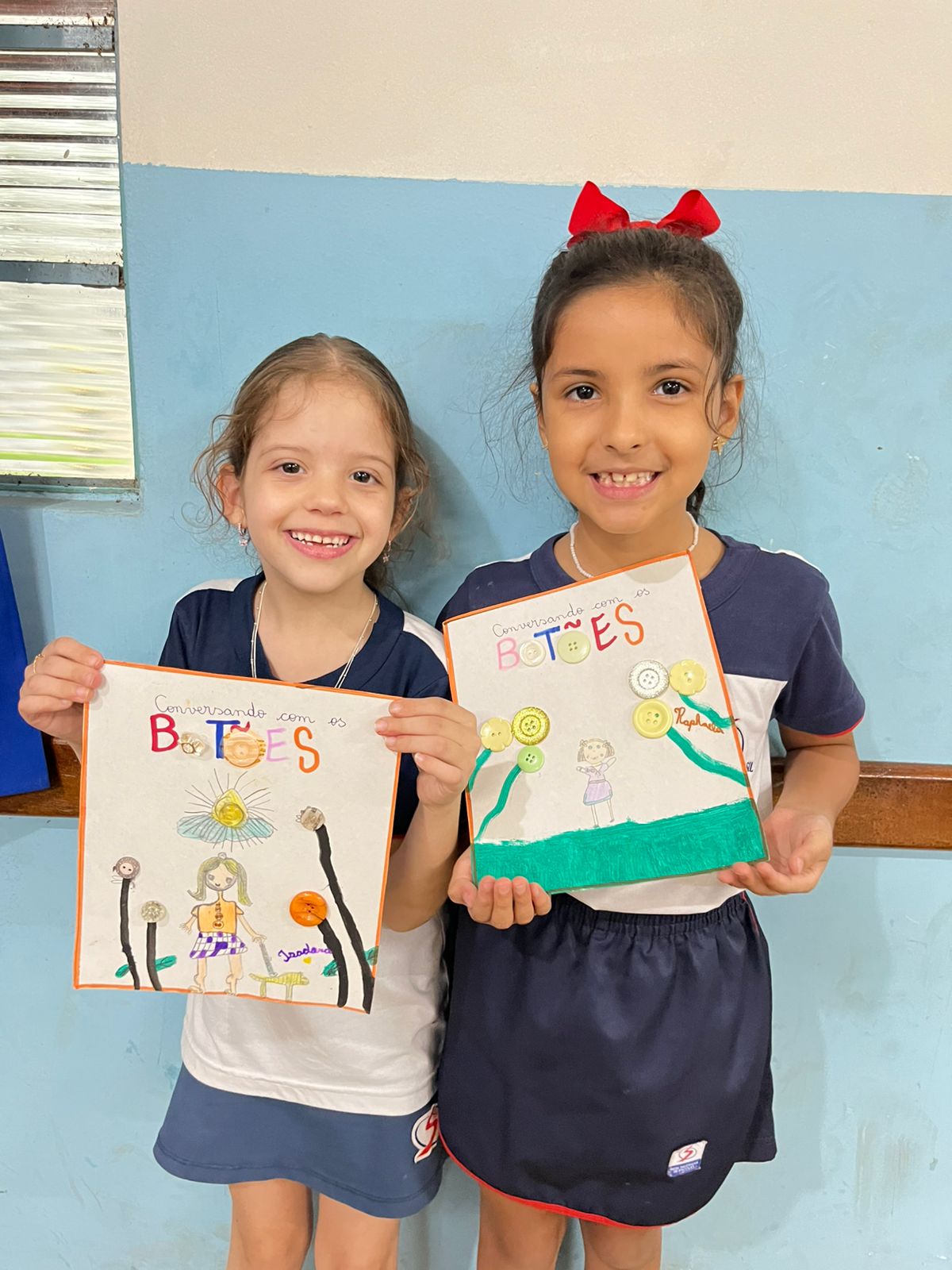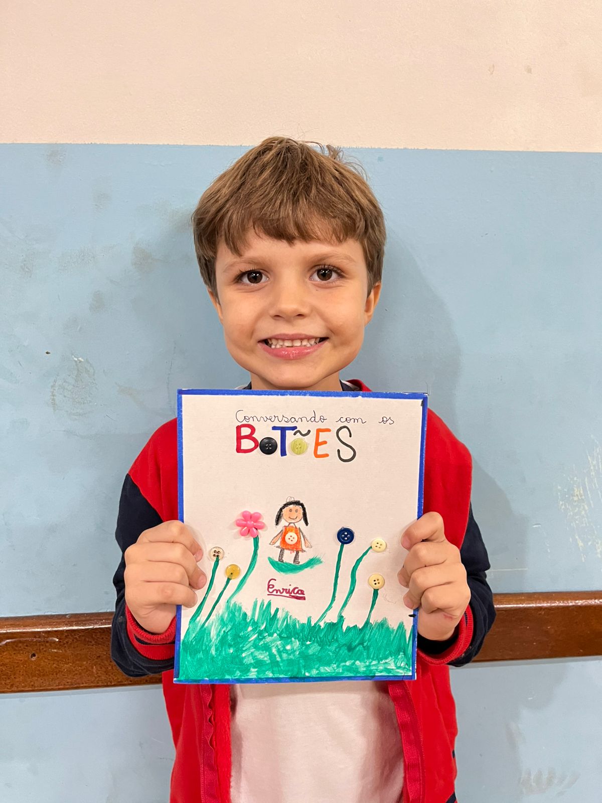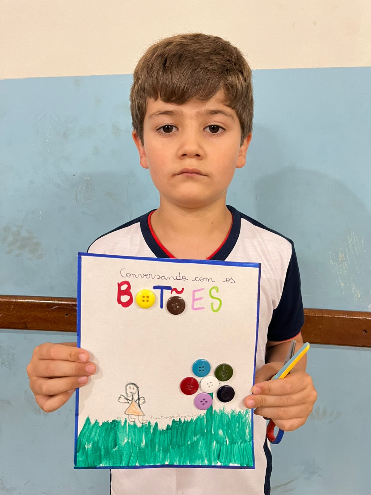 Os alunos do 1° ano do ensino fundamental I, realizaram a atividade de arte voltada ao livro “Conversando com os botões”. A atividade objetivou desenvolver a percepção visual e a criatividade dos educandos.
