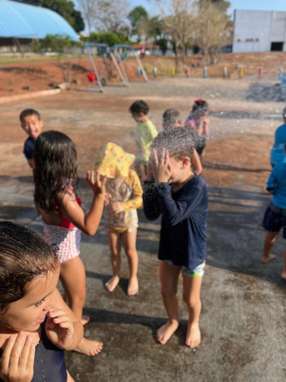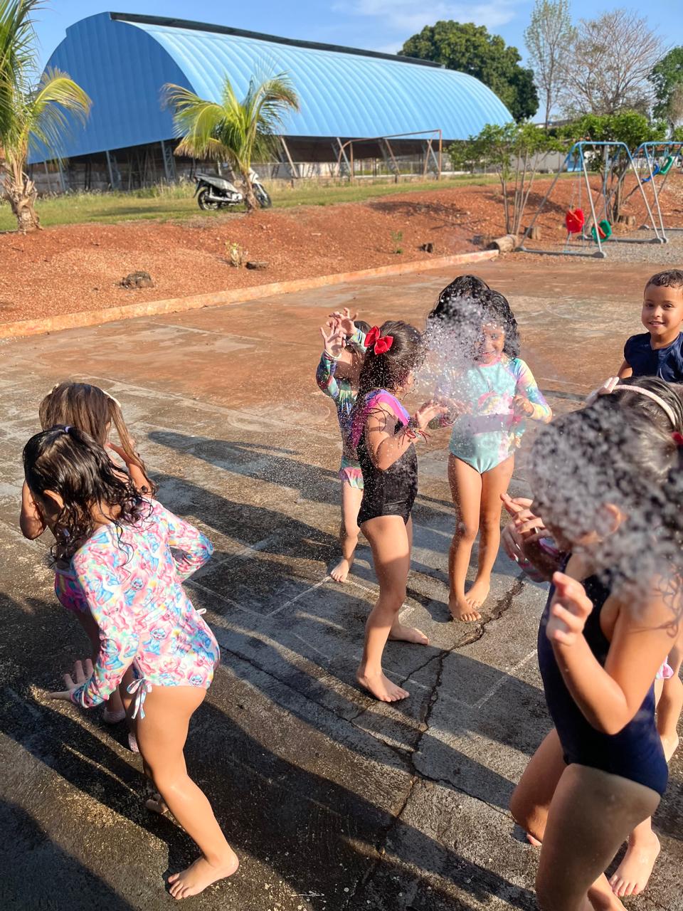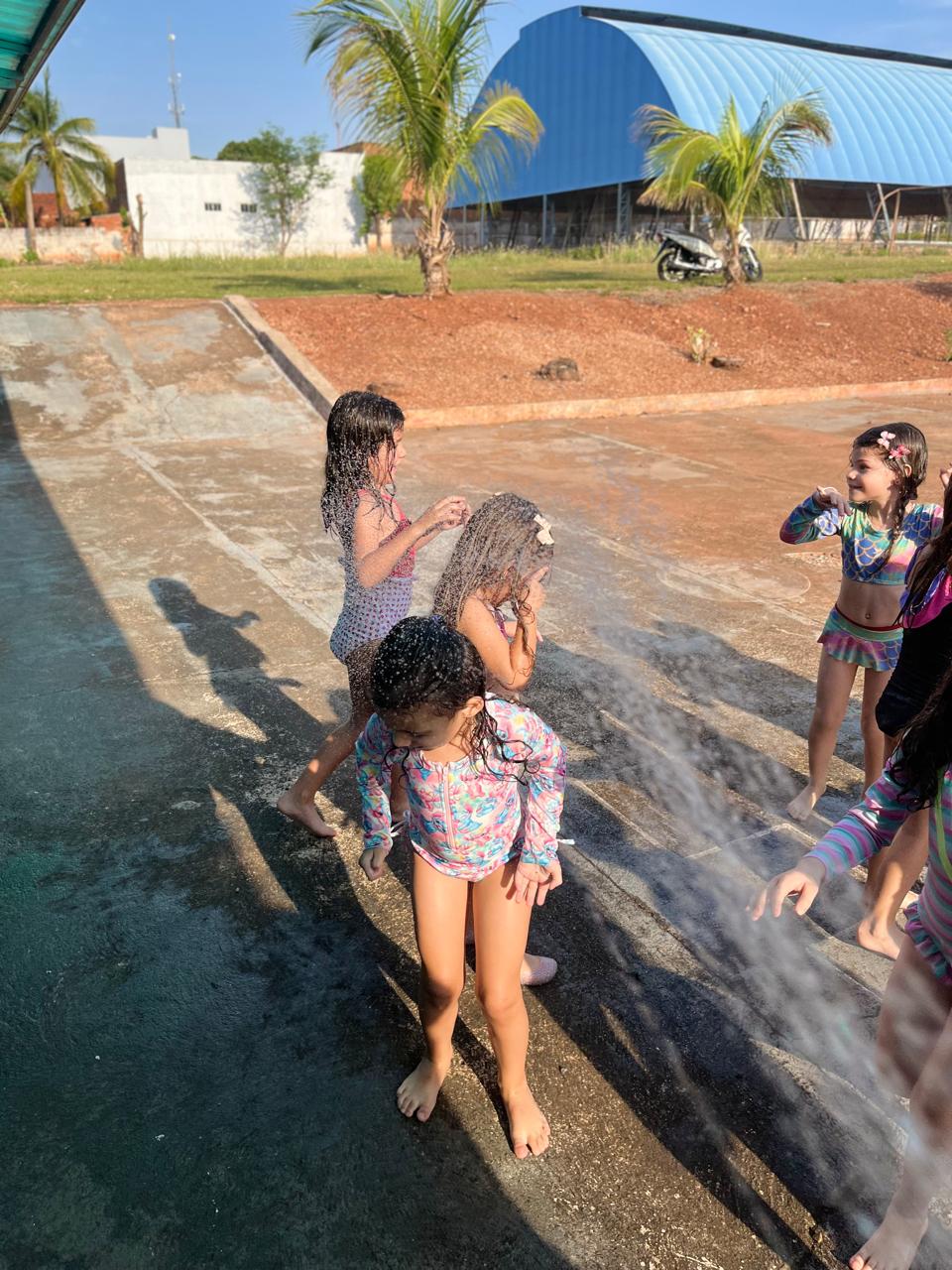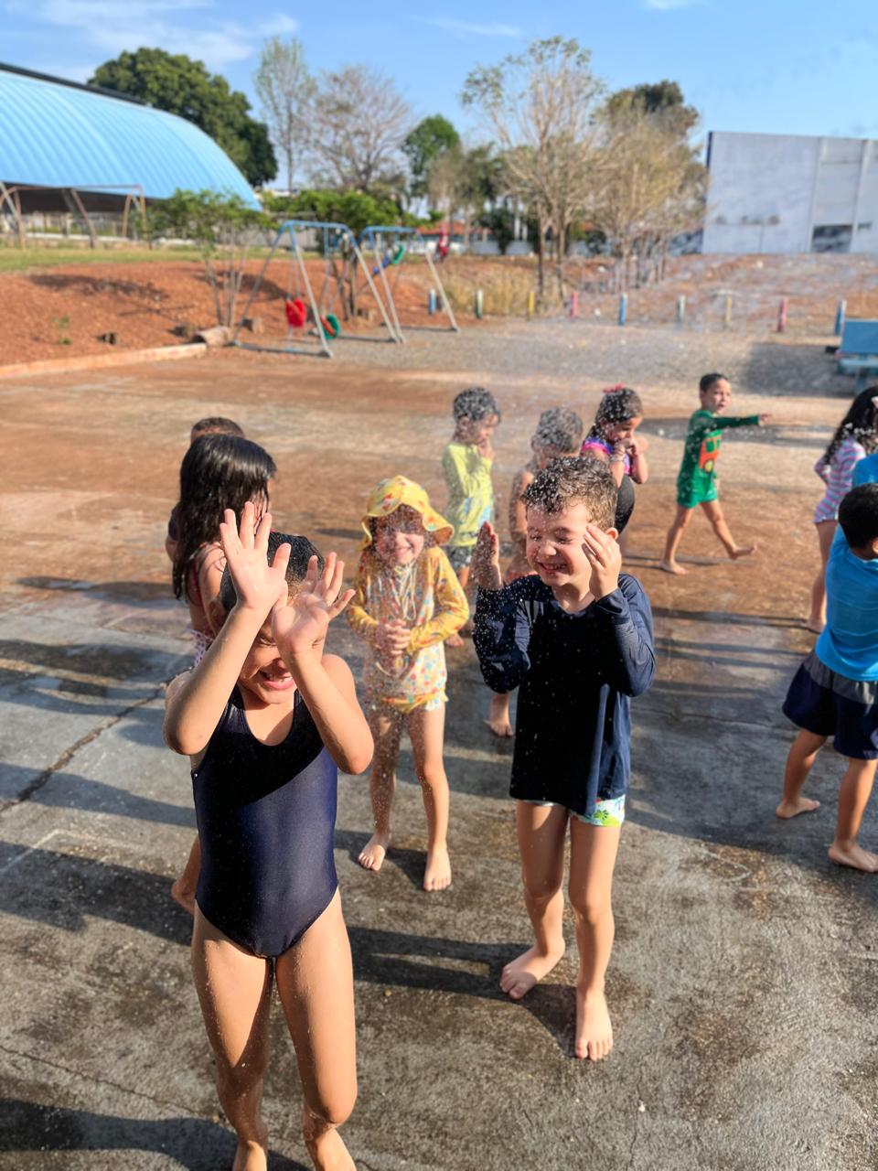 - Tiveram um momento cinema com direito a ingresso para entrada e aproveitaram para identificar o número da poltrona e conhecer como se fala em inglês o numeral, e para finalizar em grande estilo, tiveram um banho de chuva/ mangueira.✨🤩