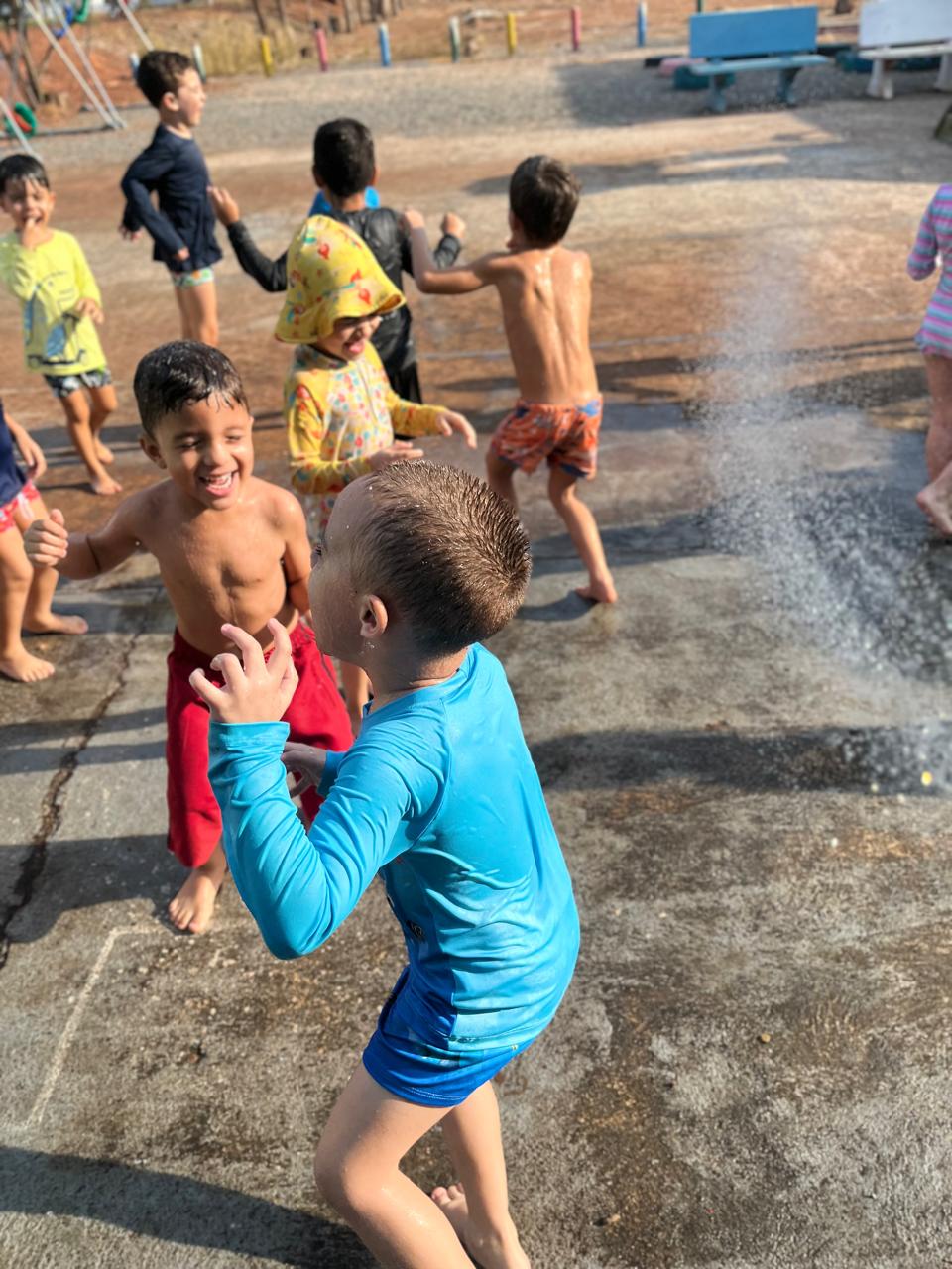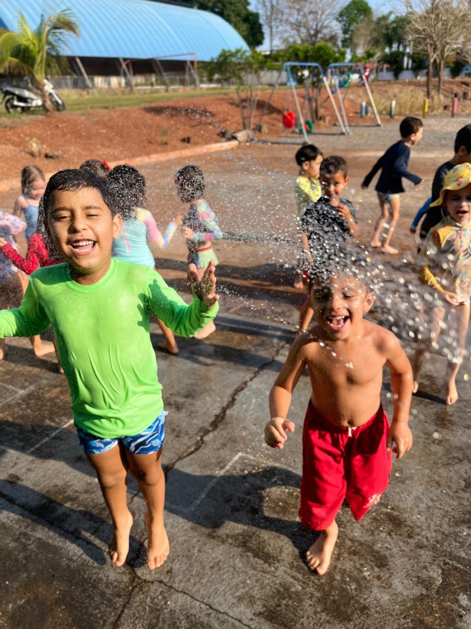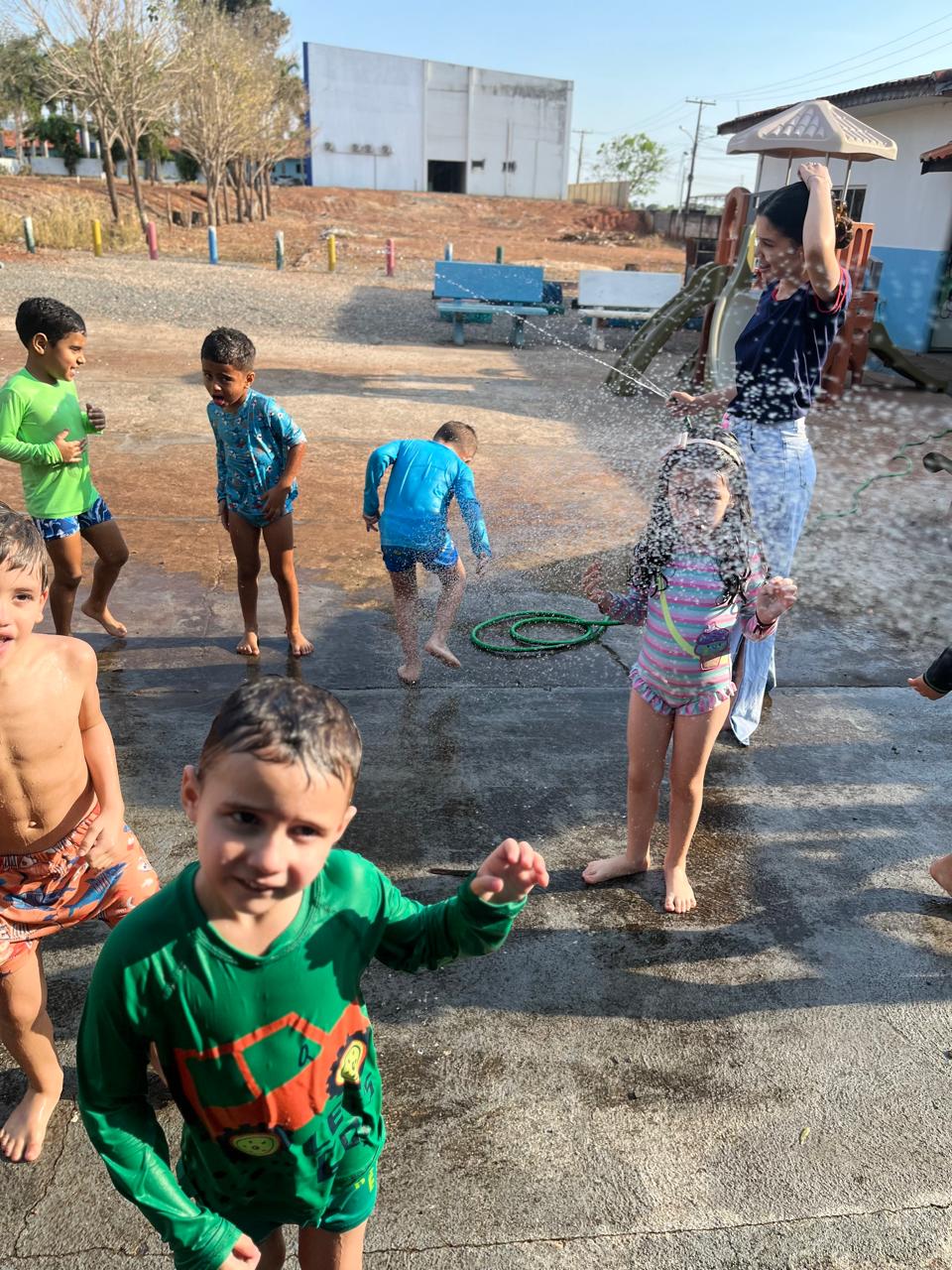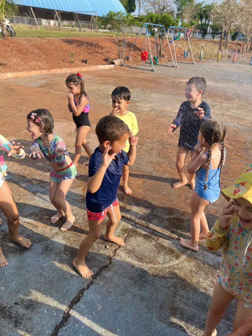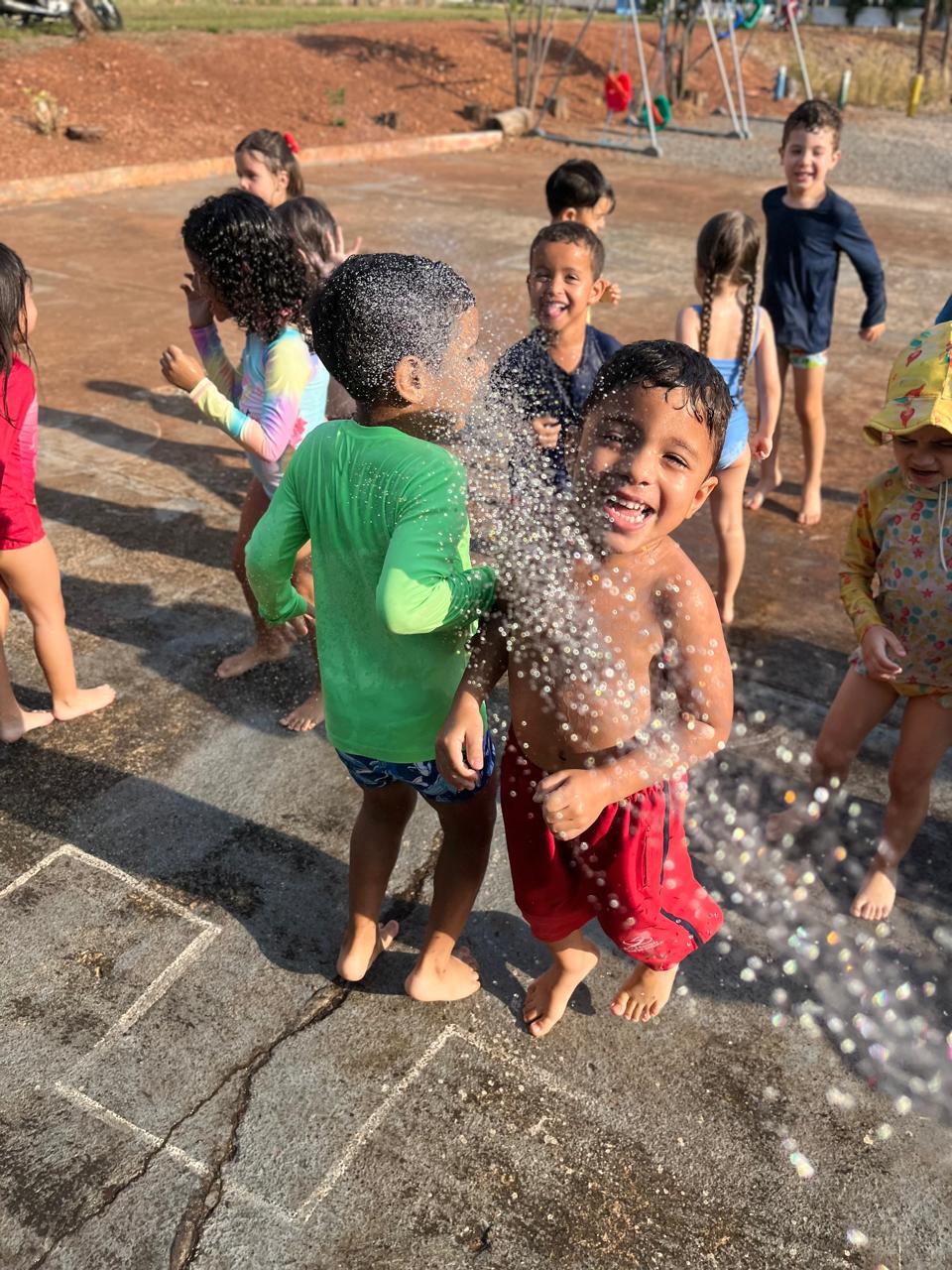 - Tiveram um momento cinema com direito a ingresso para entrada e aproveitaram para identificar o número da poltrona e conhecer como se fala em inglês o numeral, e para finalizar em grande estilo, tiveram um banho de chuva/ mangueira.✨🤩