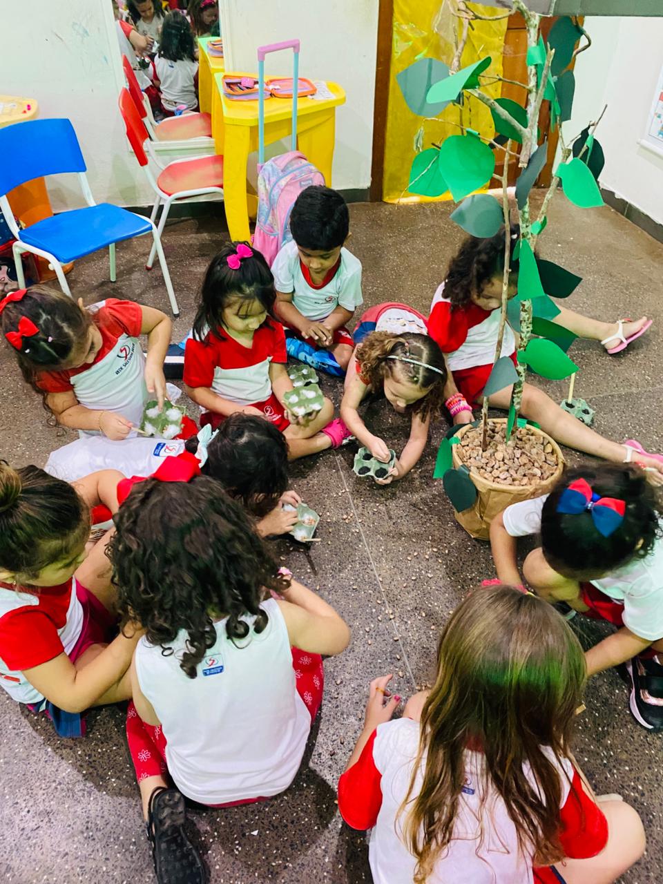 🌱 As crianças aprenderam um pouco sobre a história de João e o pé de feijão. Elas plantaram seus próprios feijõezinhos e estão ansiosas para acompanhar o crescimento! 🌿✨