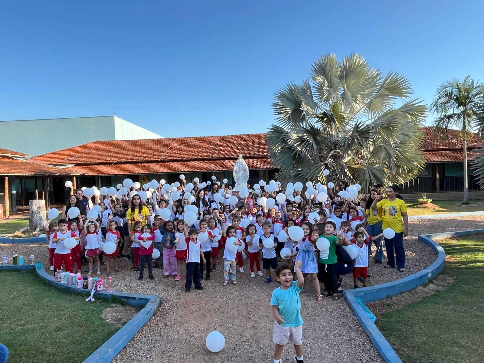 Depois, seguimos juntos para o pátio central, com balões na mão, nossas vozes se uniram em um só coro: “Parabéns, Escola Padre José de Anchieta, pelos seus 40 anos de história!” 🎈🎶🎂